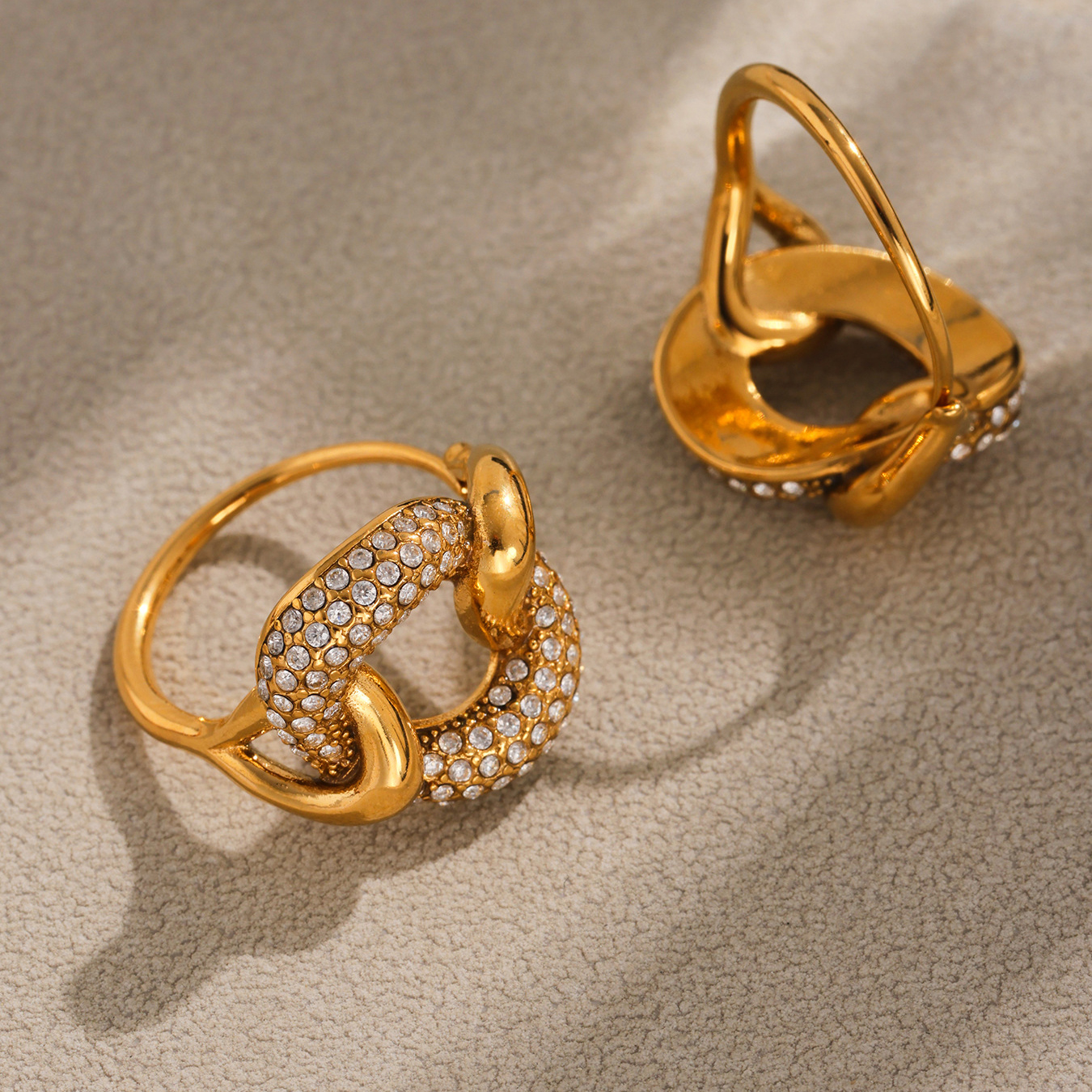 Bague en acier inoxydable Incrusté de zircon, Acier inoxydable 304, Plaqué d'or 18K, pavé de micro zircon & pour femme & creux, Taille:7, Vendu par PC