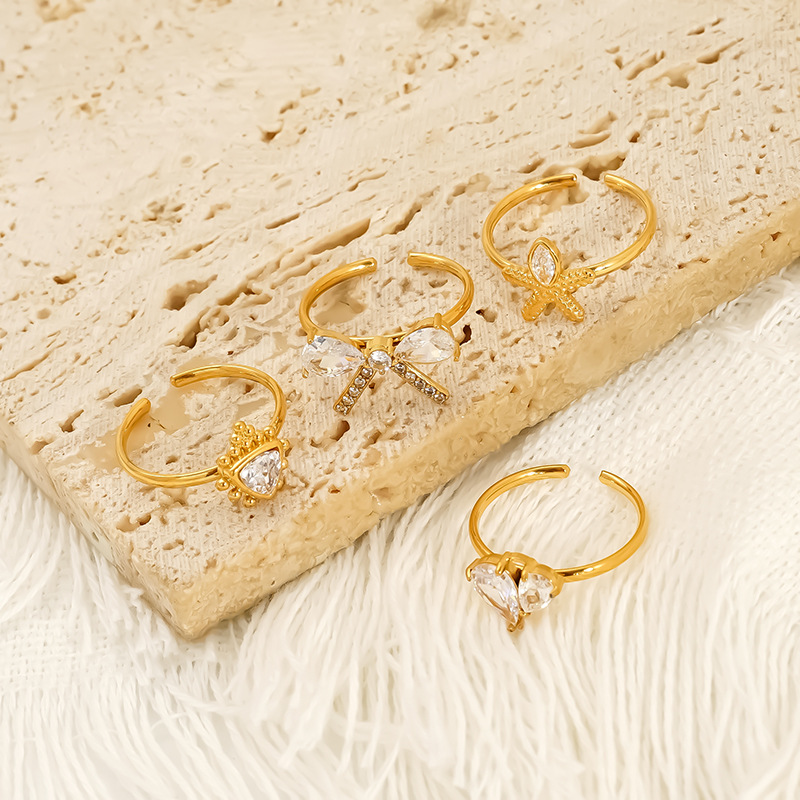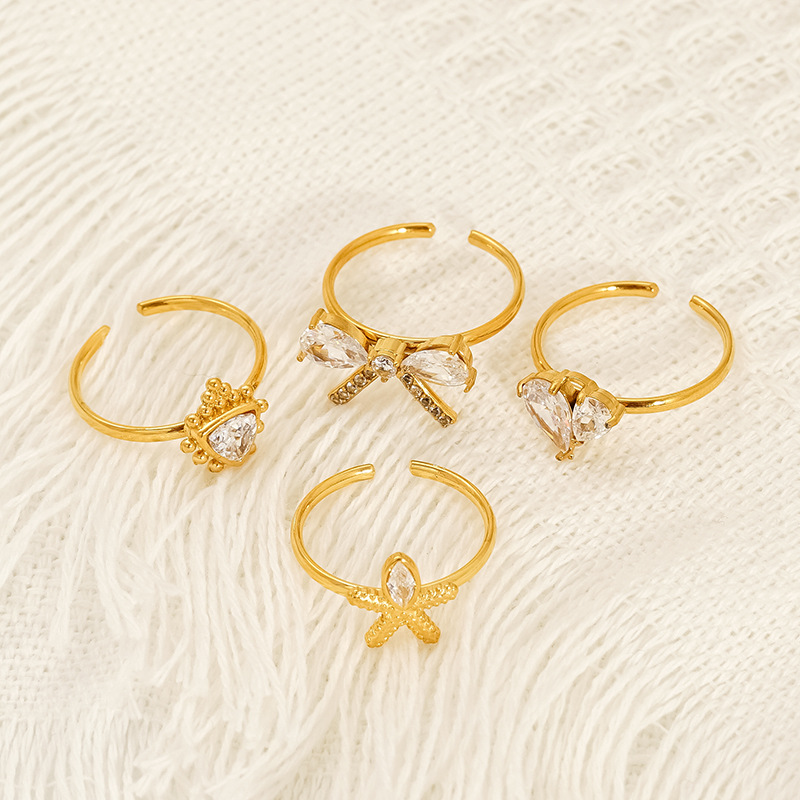 Bague en acier inoxydable Incrusté de zircon, Acier inoxydable 304, Plaqué or 18K, styles différents pour le choix & pavé de micro zircon & pour femme, Vendu par PC