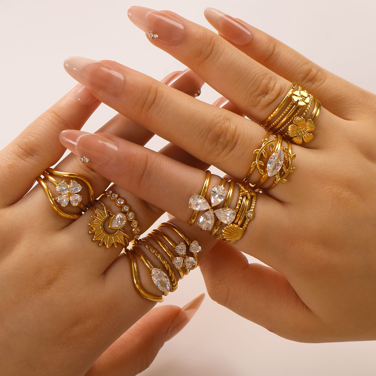 Bague en acier inoxydable Incrusté de zircon, Acier inoxydable 304, avec zircon cubique, Placage, trois pièces & styles différents pour le choix & pour femme, doré, Vendu par fixé