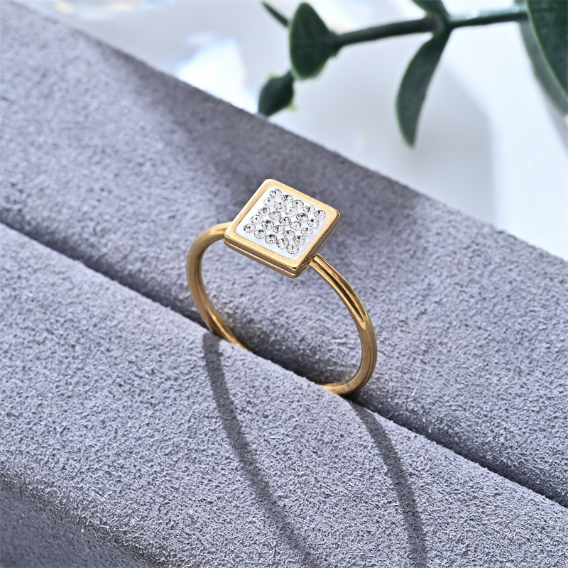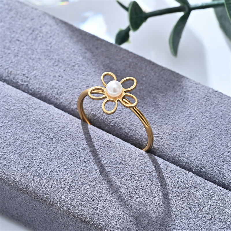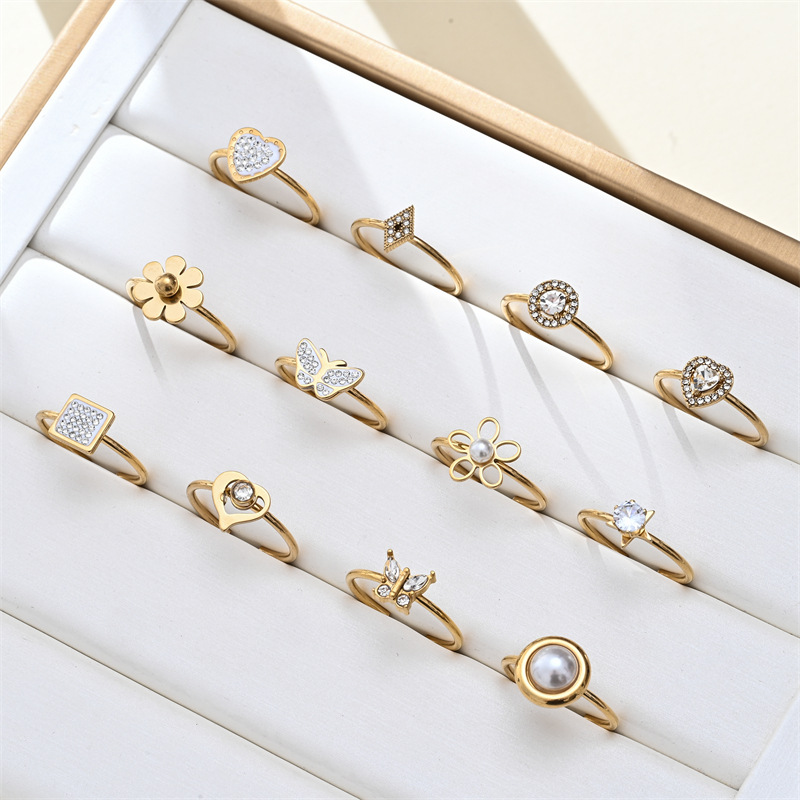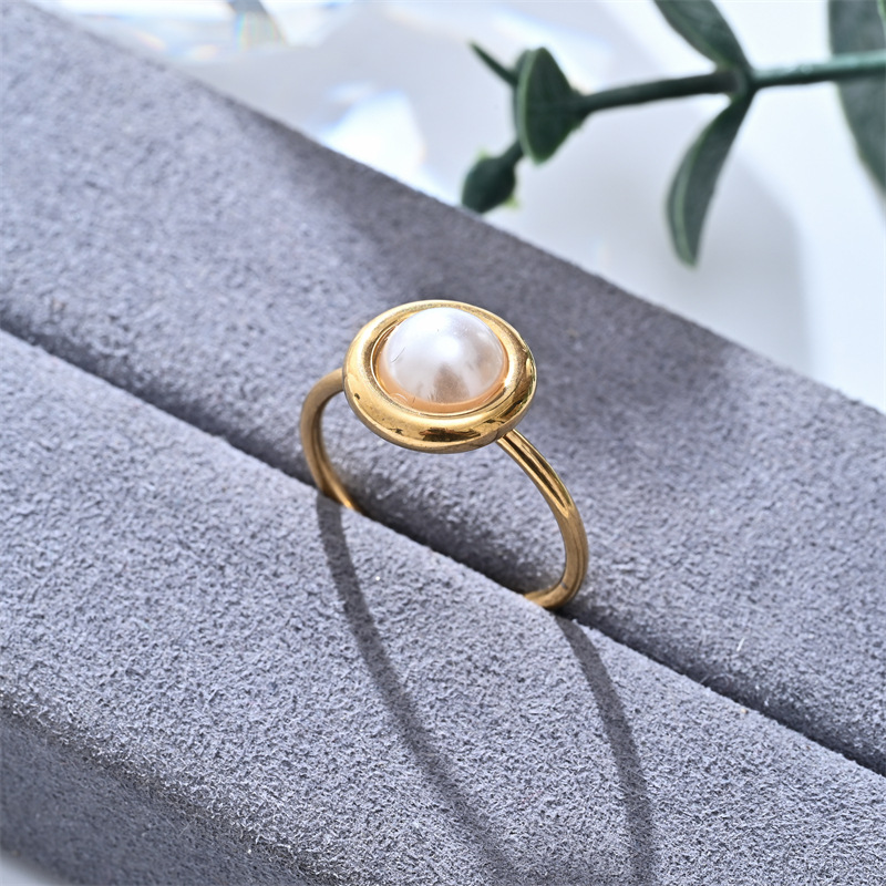 Bague en acier inoxydable Incrusté de zircon, Acier inoxydable 304, avec perle de plastique, Placage, styles différents pour le choix & pavé de micro zircon & pour femme, doré, Vendu par PC