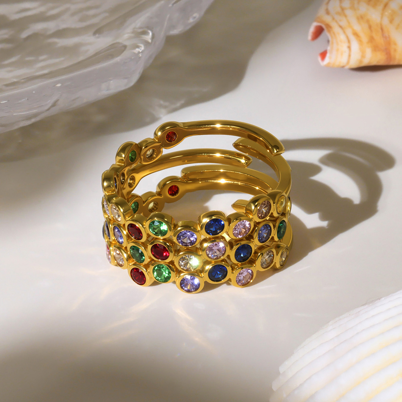 Bague en acier inoxydable Incrusté de zircon, Acier inoxydable 304, Placage, bijoux de mode & pavé de micro zircon & pour femme, plus de couleurs à choisir, Vendu par PC