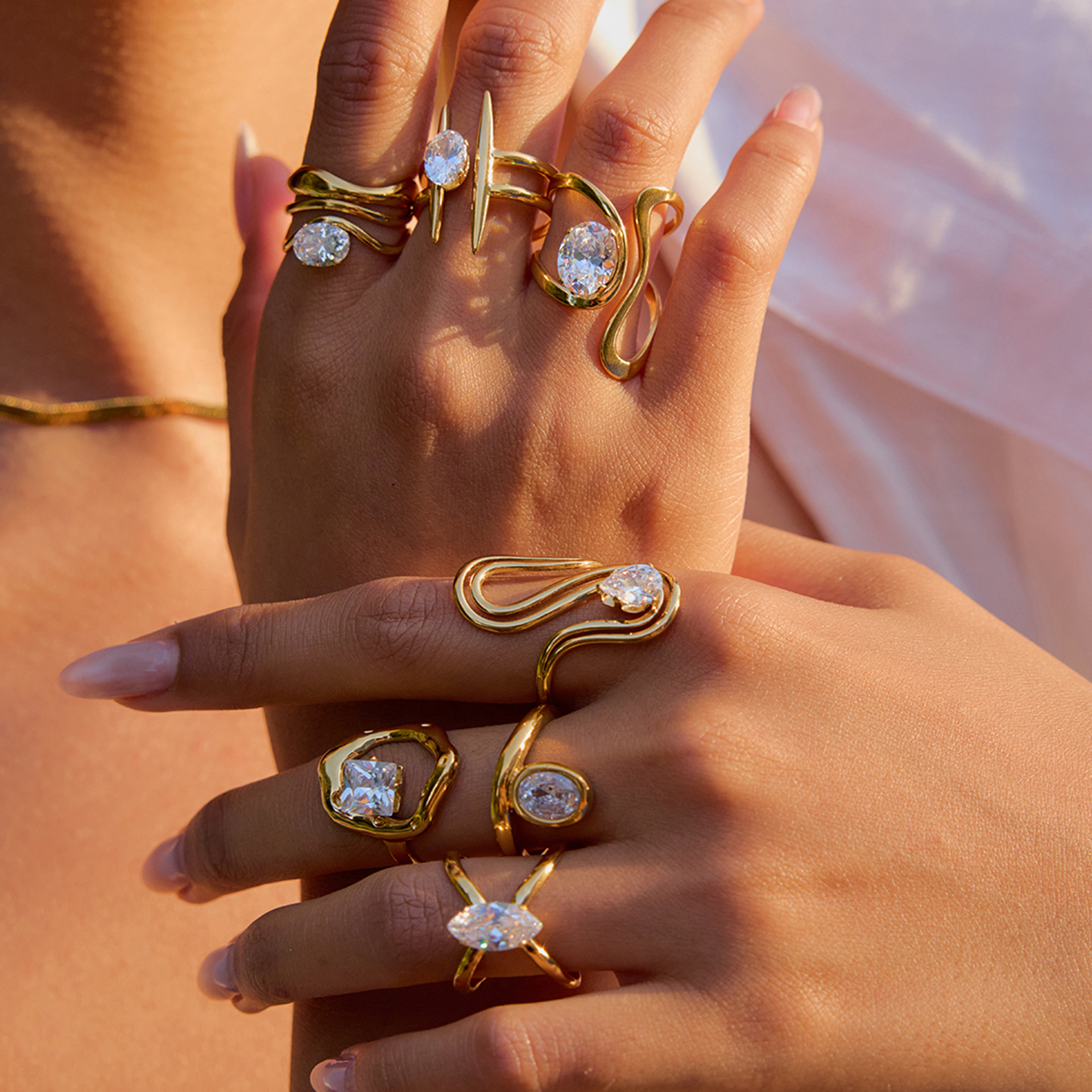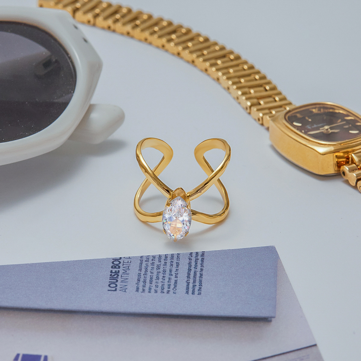 Bague en acier inoxydable Incrusté de zircon, Acier inoxydable 304, avec zircon cubique, Placage, styles différents pour le choix & pour femme & creux, doré, Vendu par PC