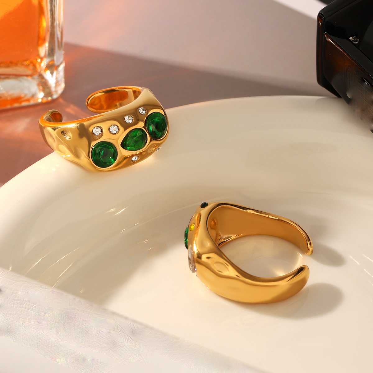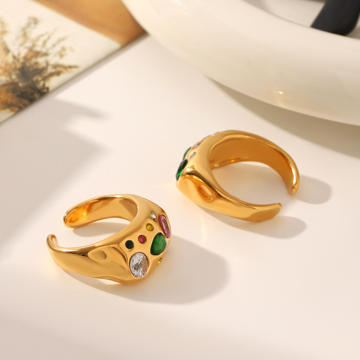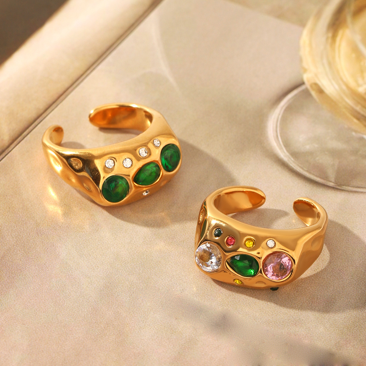 Bague en acier inoxydable Incrusté de zircon, Acier inoxydable 304, avec zircon cubique, Plaqué or 18K, bijoux de mode & styles différents pour le choix & pour femme, Vendu par PC