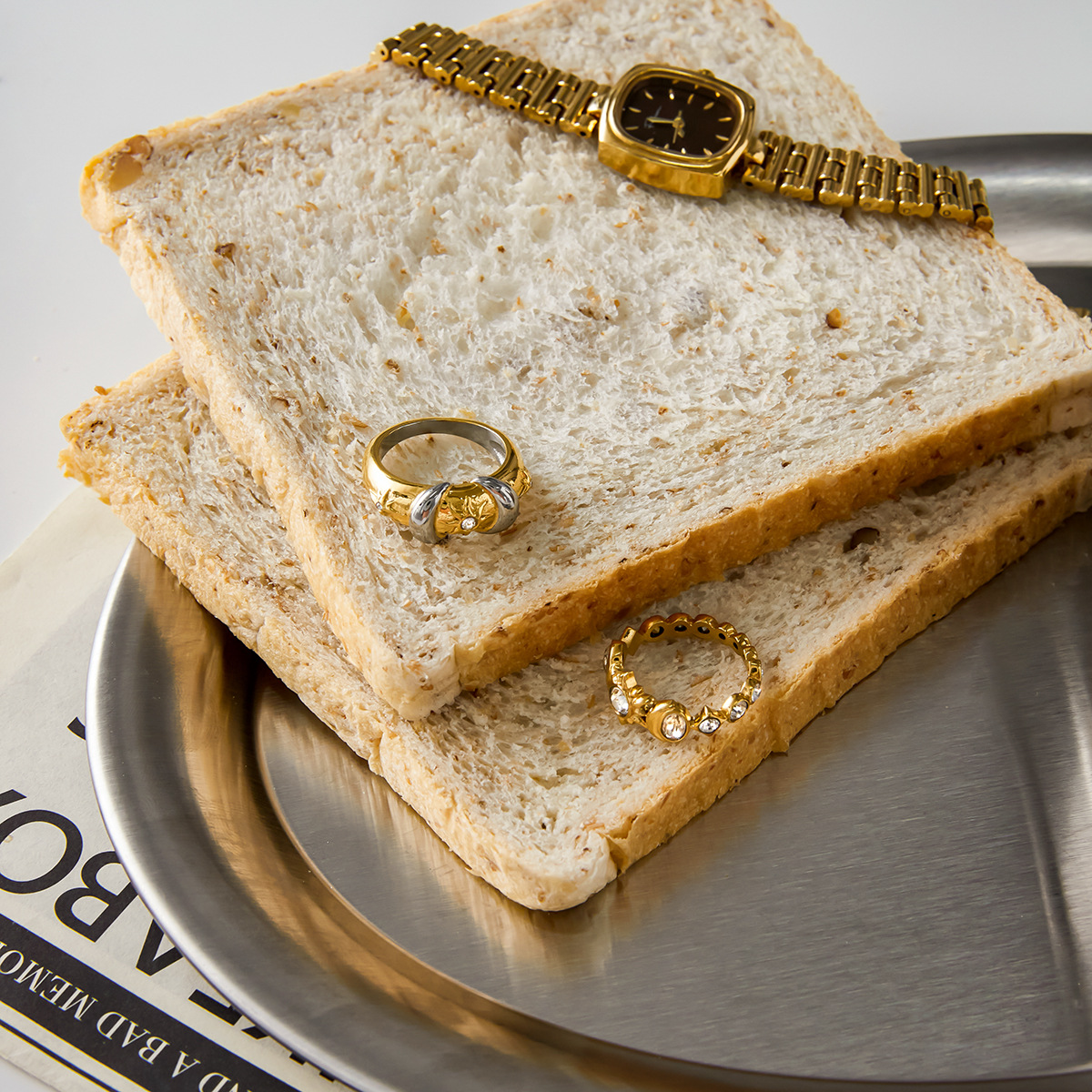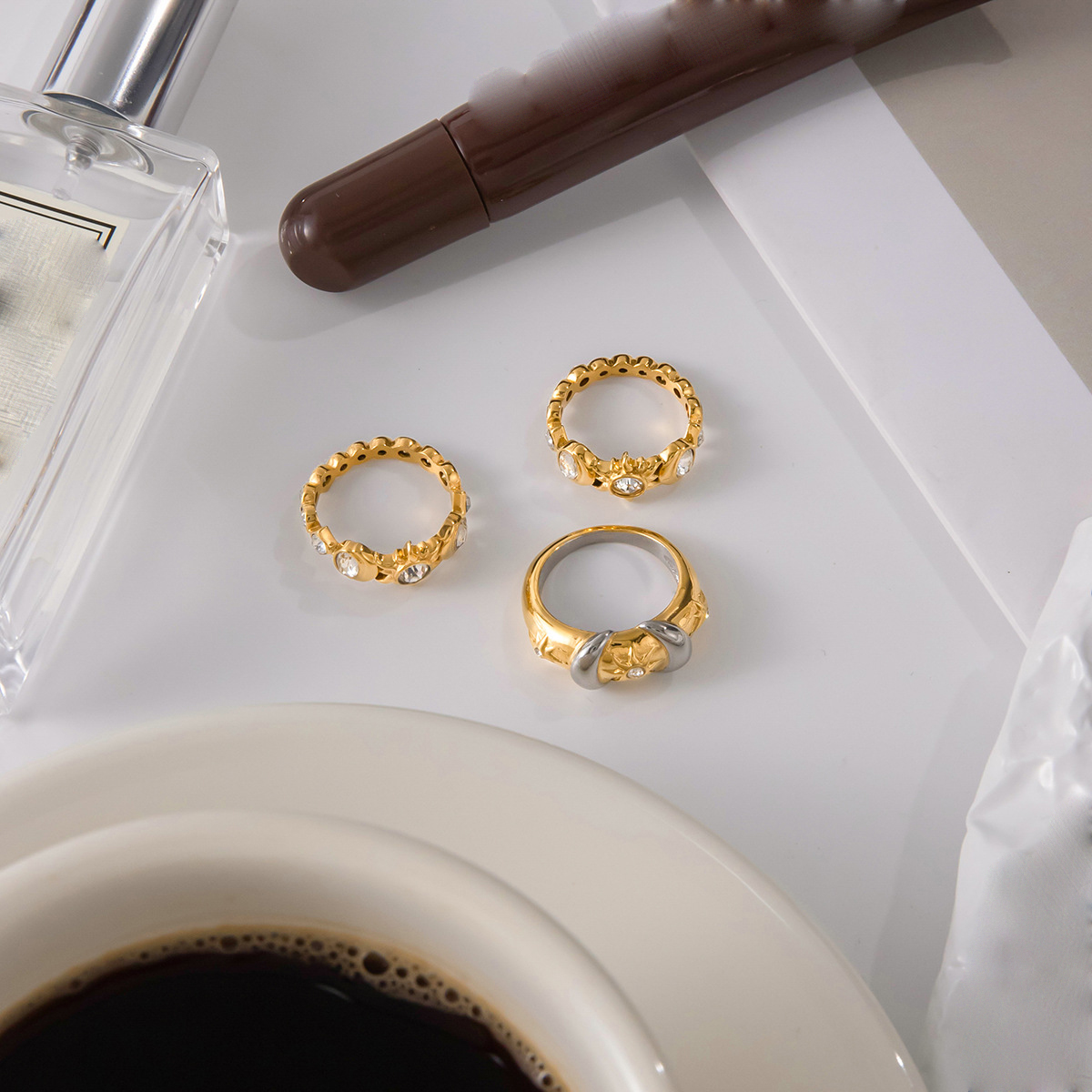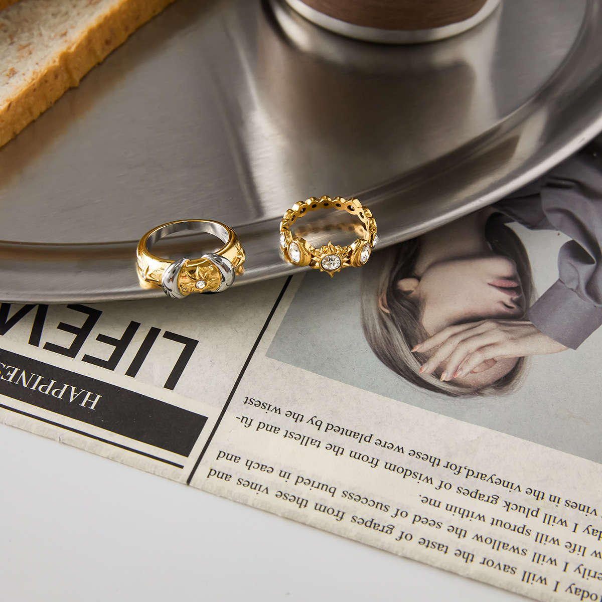 Bague en acier inoxydable Incrusté de zircon, Acier inoxydable 304, Placage, normes différentes pour le choix & styles différents pour le choix & pavé de micro zircon & pour femme, doré, Vendu par PC