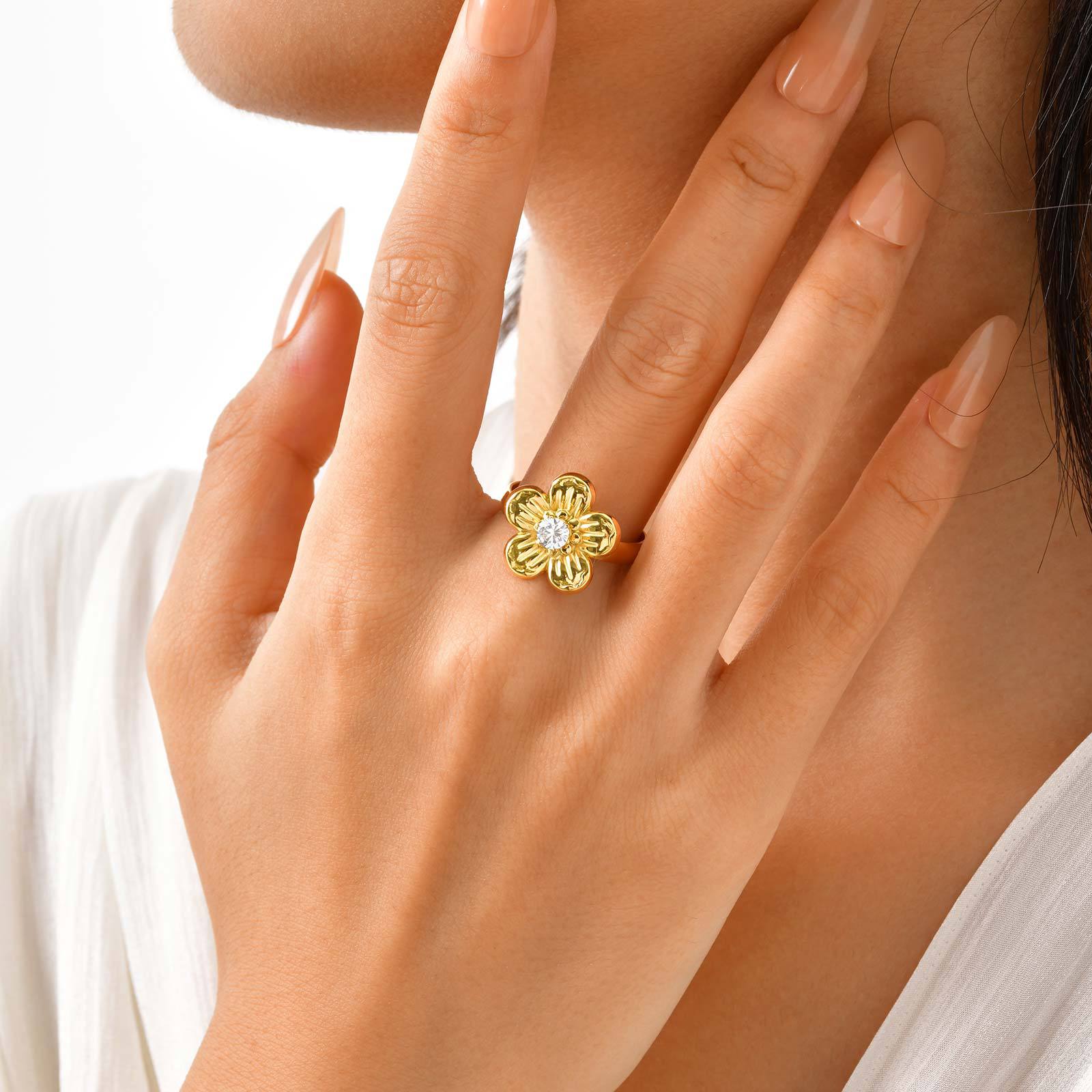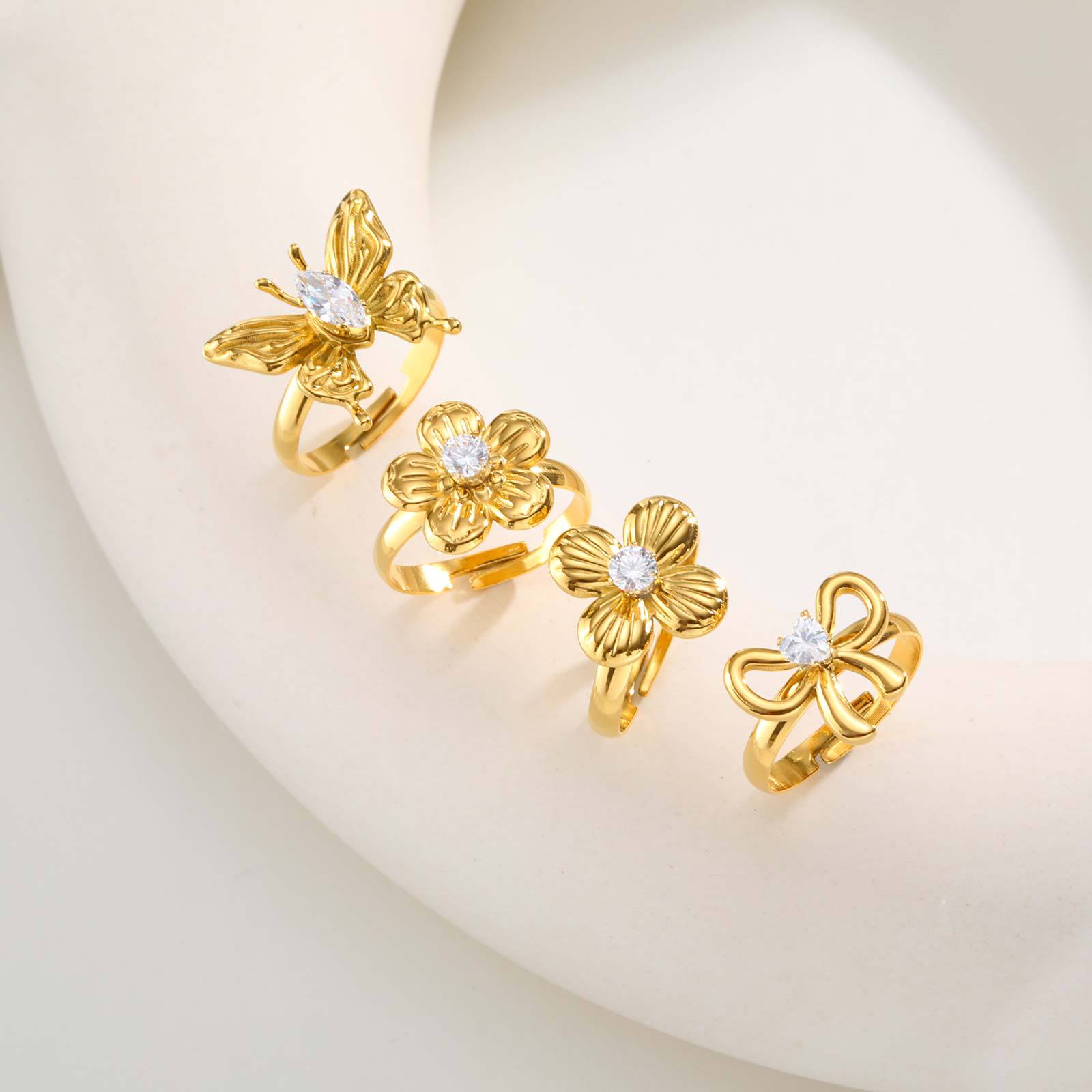 Bague en acier inoxydable Incrusté de zircon, Acier inoxydable 304, avec zircon cubique, Placage, bijoux de mode & styles différents pour le choix & pour femme, doré, Vendu par PC