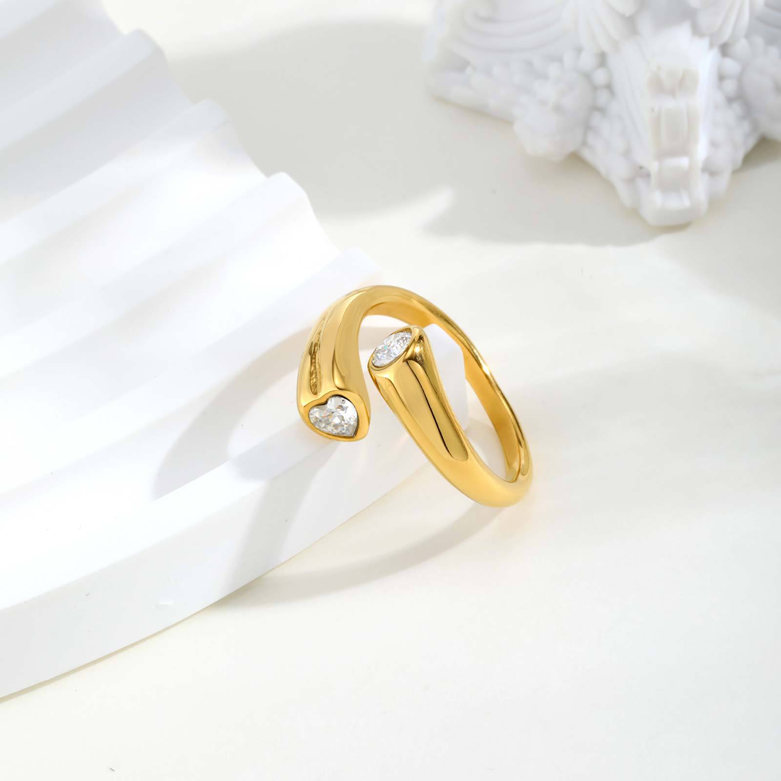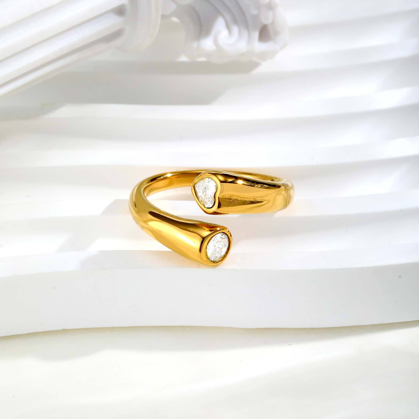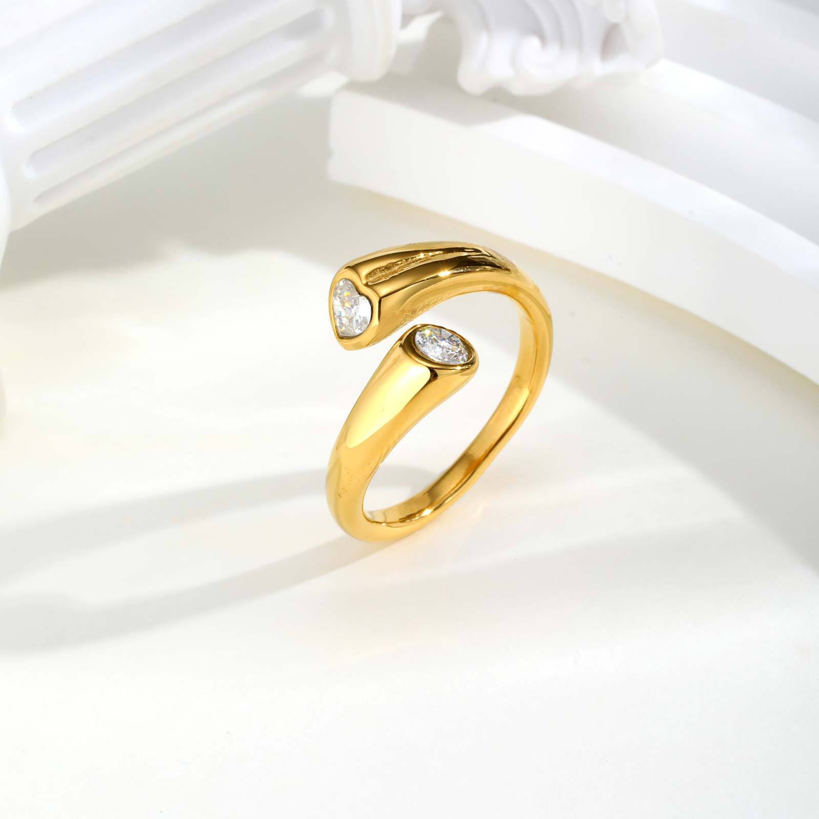 Bague en acier inoxydable Incrusté de zircon, Acier inoxydable 304, avec zircon cubique, Placage, bijoux de mode & normes différentes pour le choix & pour femme, doré, Vendu par PC