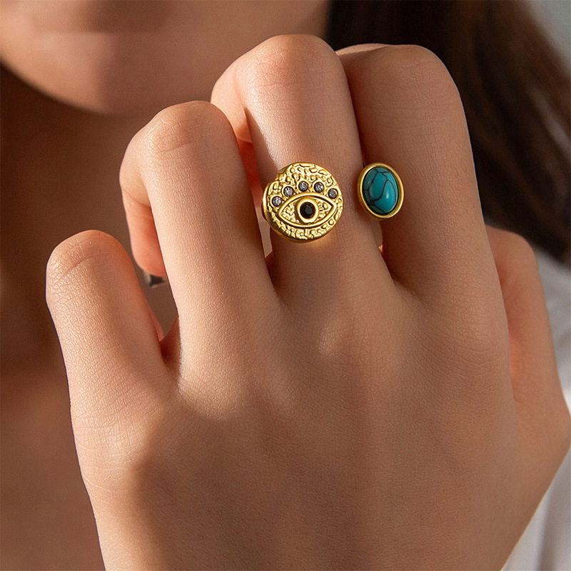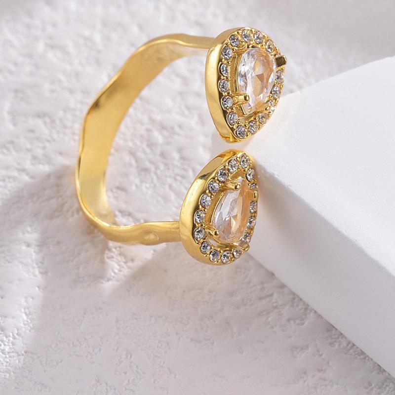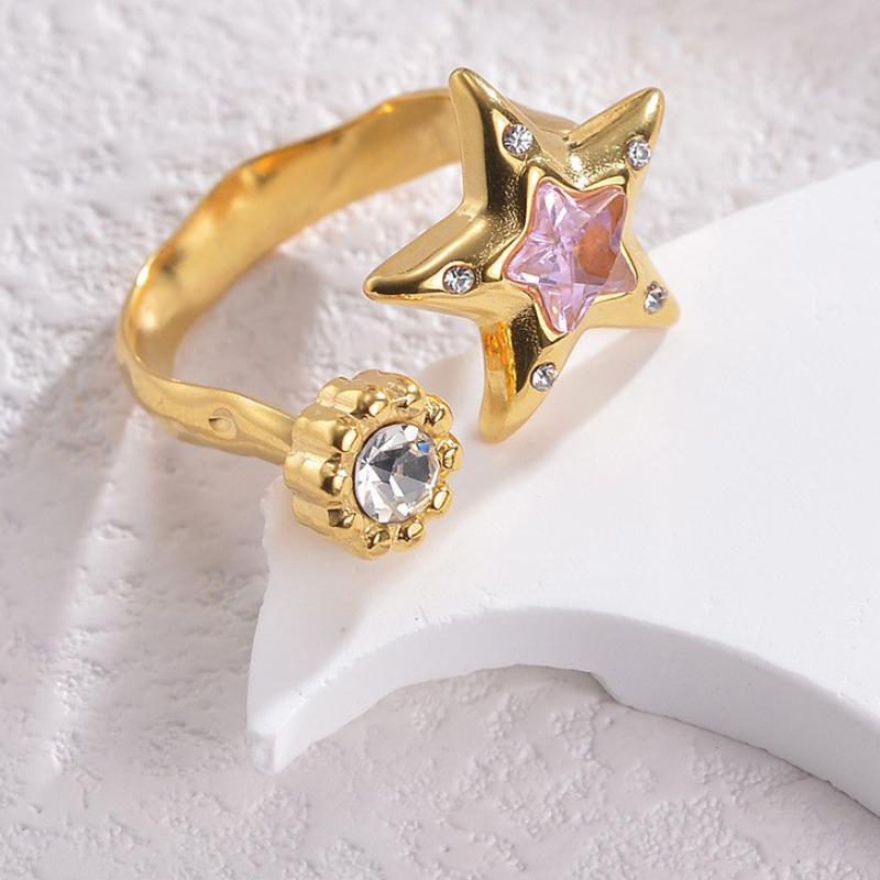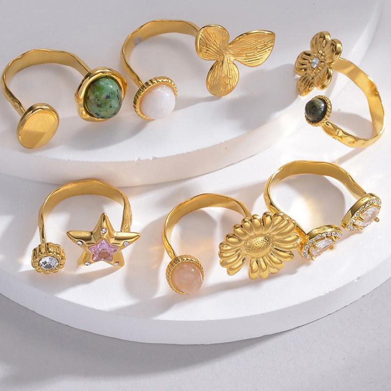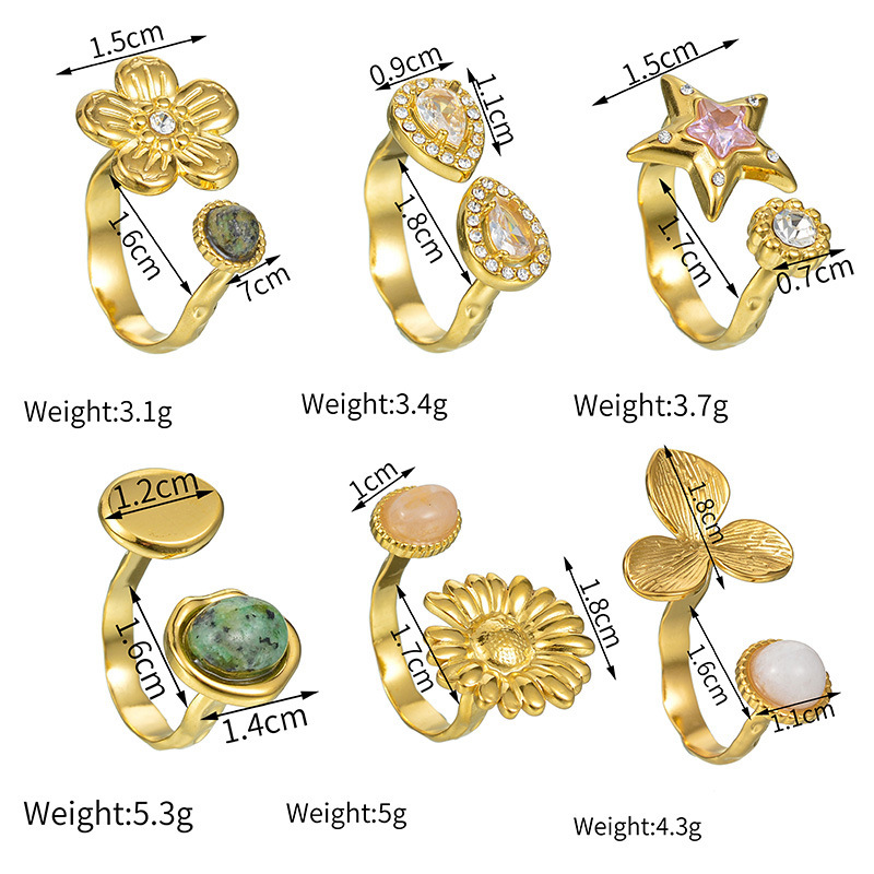 Bague en acier inoxydable Incrusté de zircon, Acier inoxydable 304, avec zircon cubique, Placage, styles différents pour le choix & pour femme, doré, Vendu par PC