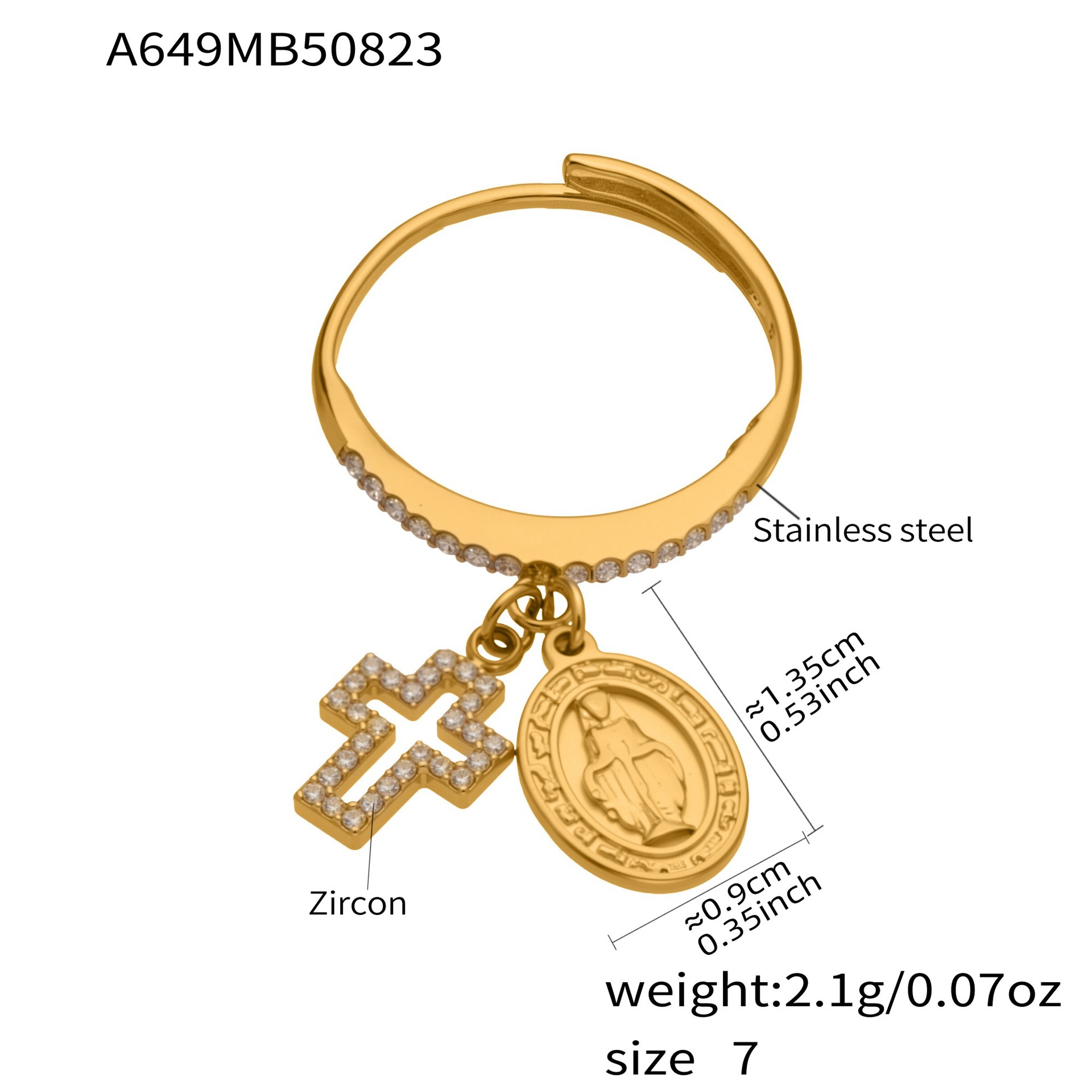 Bague en acier inoxydable Incrusté de zircon, Acier inoxydable 316, avec zircone cubique, grade AAA Vendu par PC