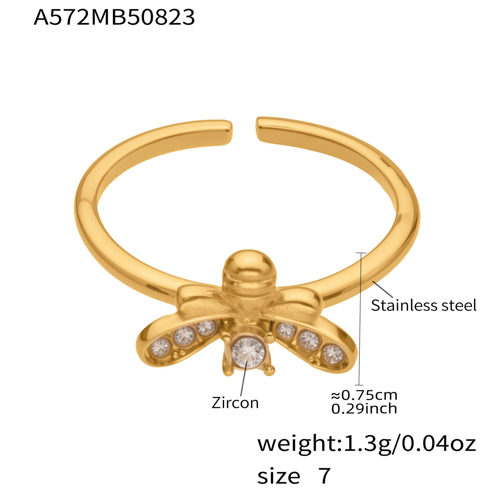 Bague en acier inoxydable Incrusté de zircon, 3mm, Vendu par PC