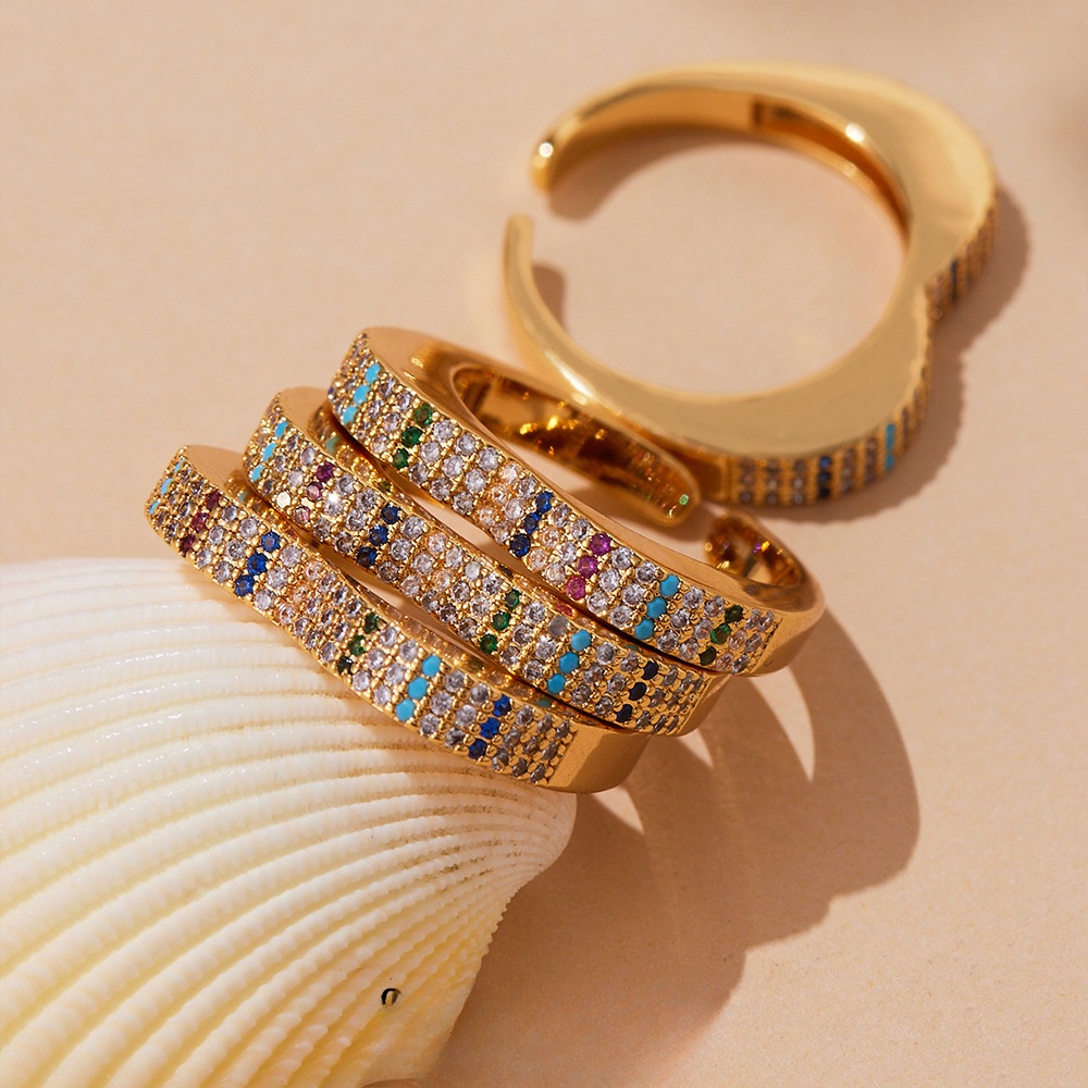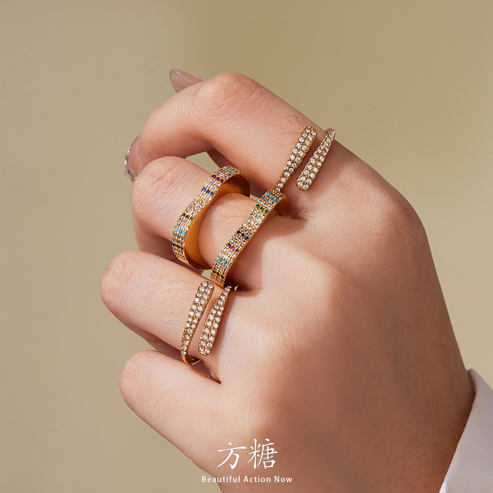 Bague en acier inoxydable Incrusté de zircon, Acier inoxydable 304, Placage de couleur d'or, bijoux de mode & pavé de micro zircon, plus de couleurs à choisir, Vendu par PC