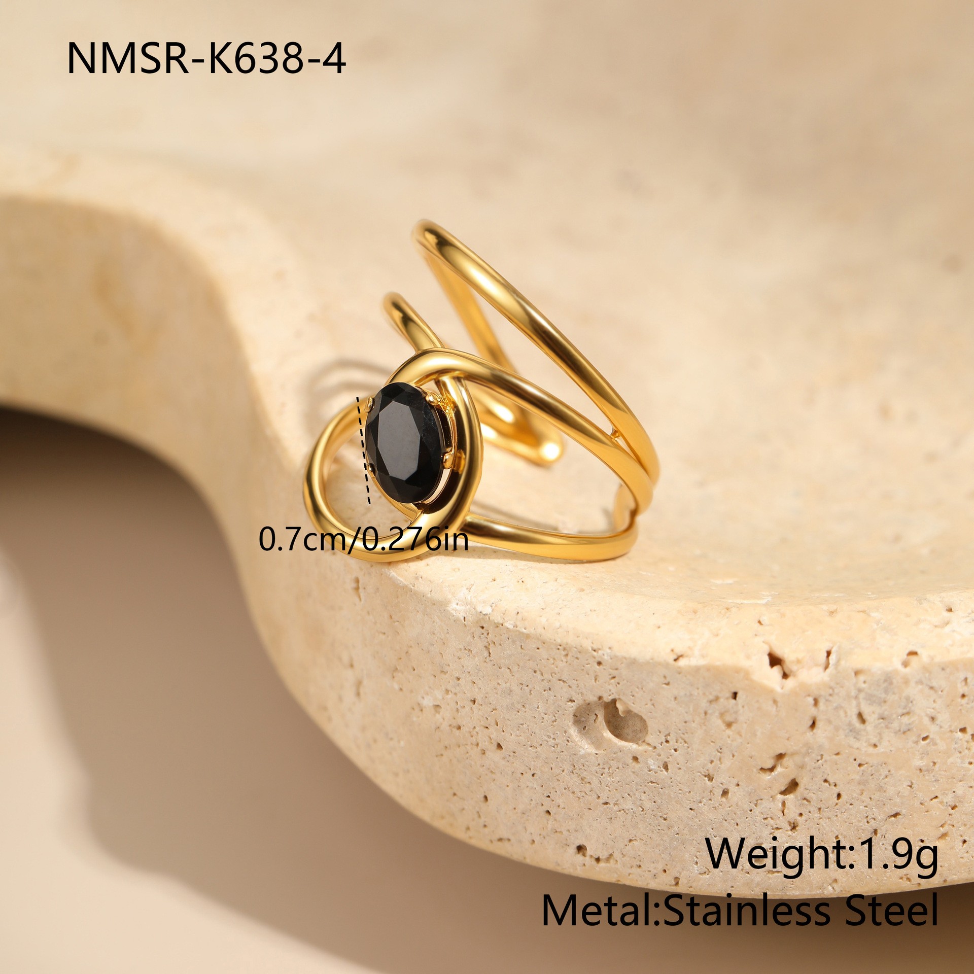 Bague en acier inoxydable Incrusté de zircon, Acier inoxydable 304, avec zircon cubique, Placage, styles différents pour le choix & pour femme & creux, doré, Vendu par PC