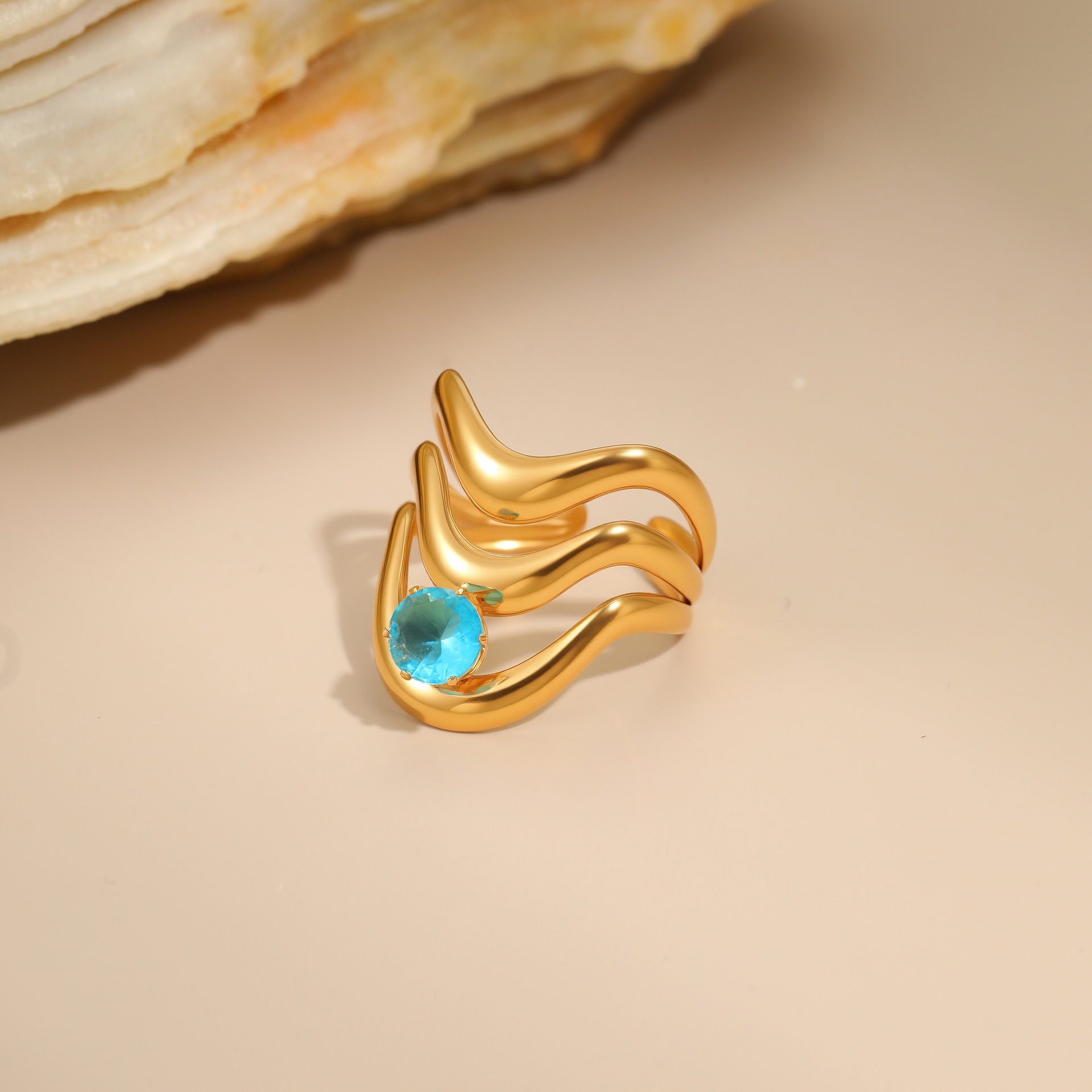Bague en acier inoxydable Incrusté de zircon, Acier inoxydable 304, avec zircon cubique, Plaqué or 18K, styles différents pour le choix & pour femme & creux, Vendu par PC