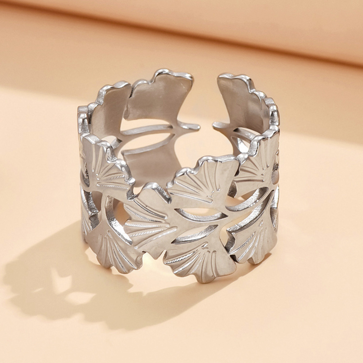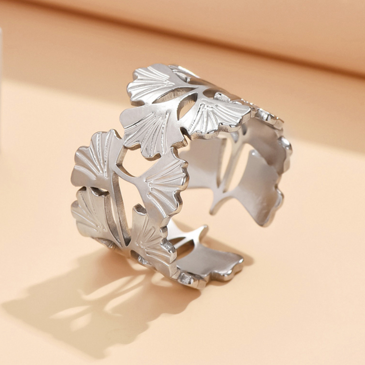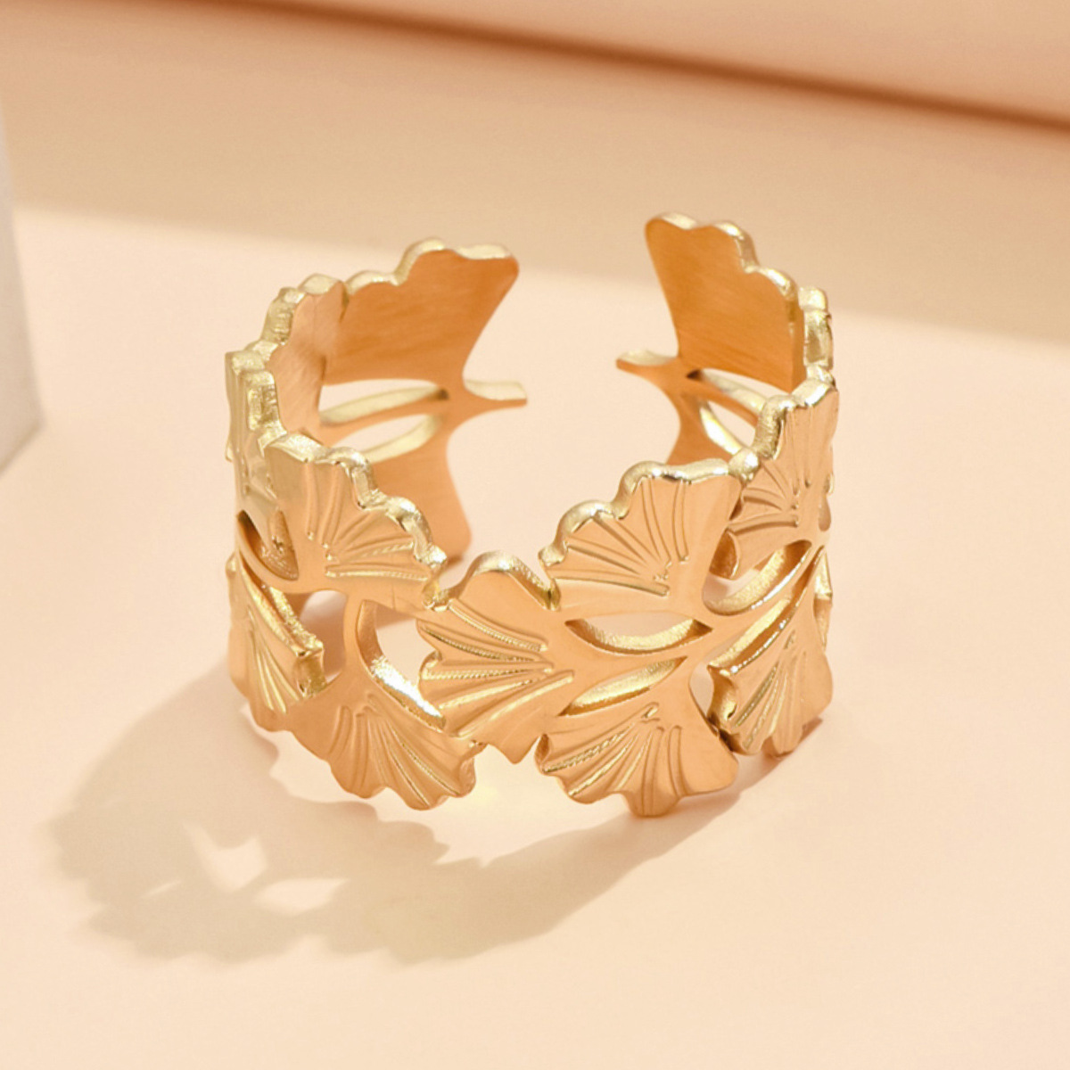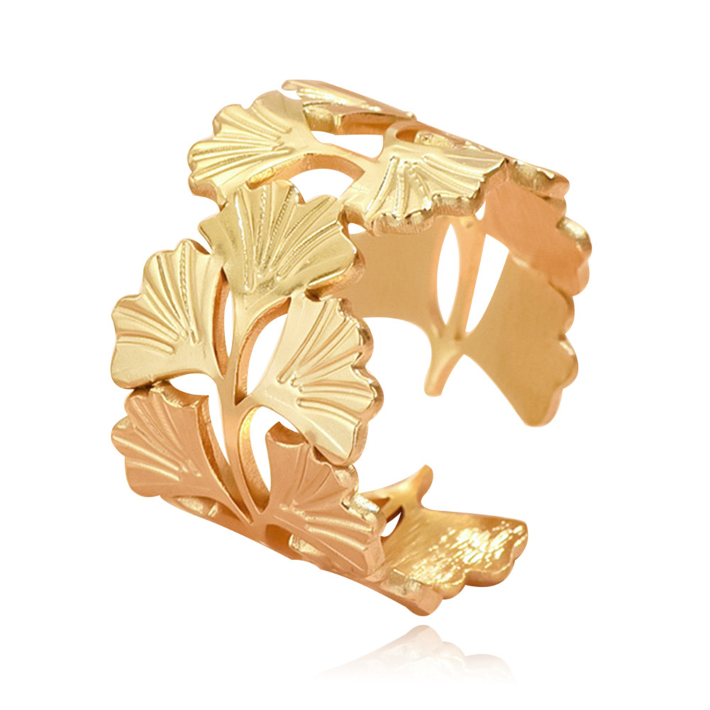 Bague en acier inoxydable, Acier inoxydable 304, Ginkgo Feuille, bijoux de mode & pour femme, plus de couleurs à choisir, Taille:7, Vendu par PC