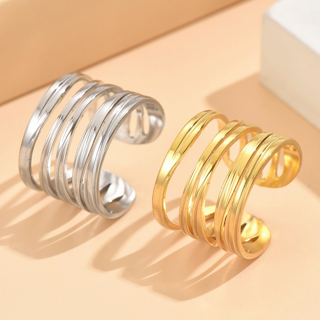 Bague en acier inoxydable, Acier inoxydable 304, réglable, couleur originale .5, Vendu par PC