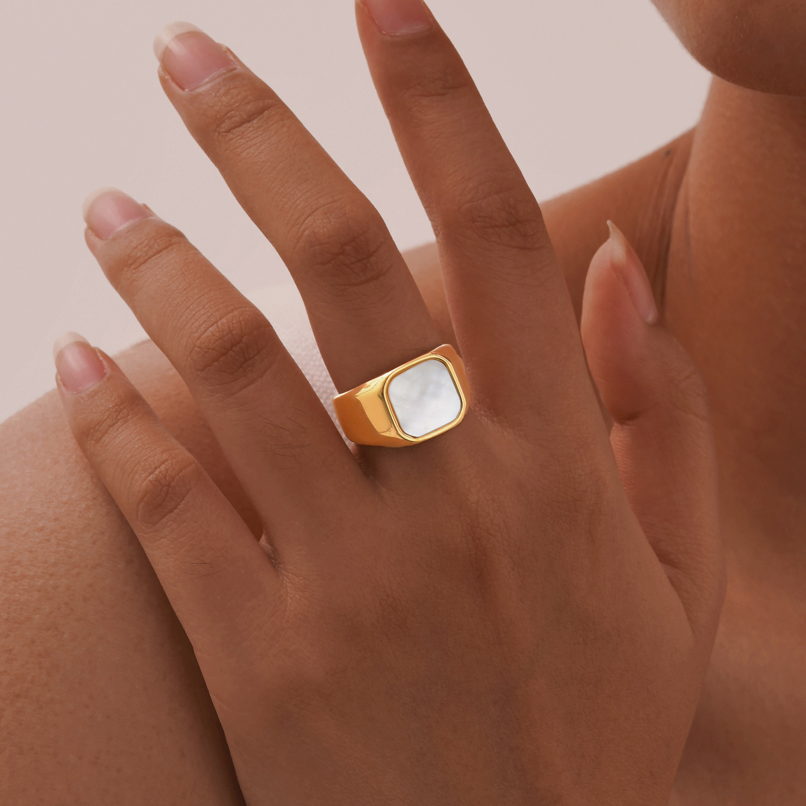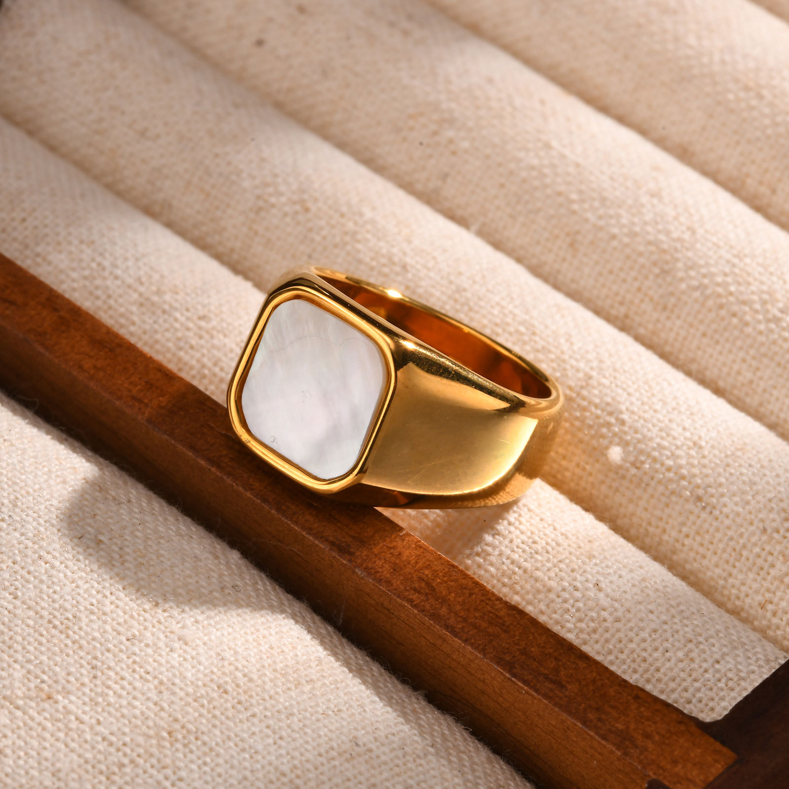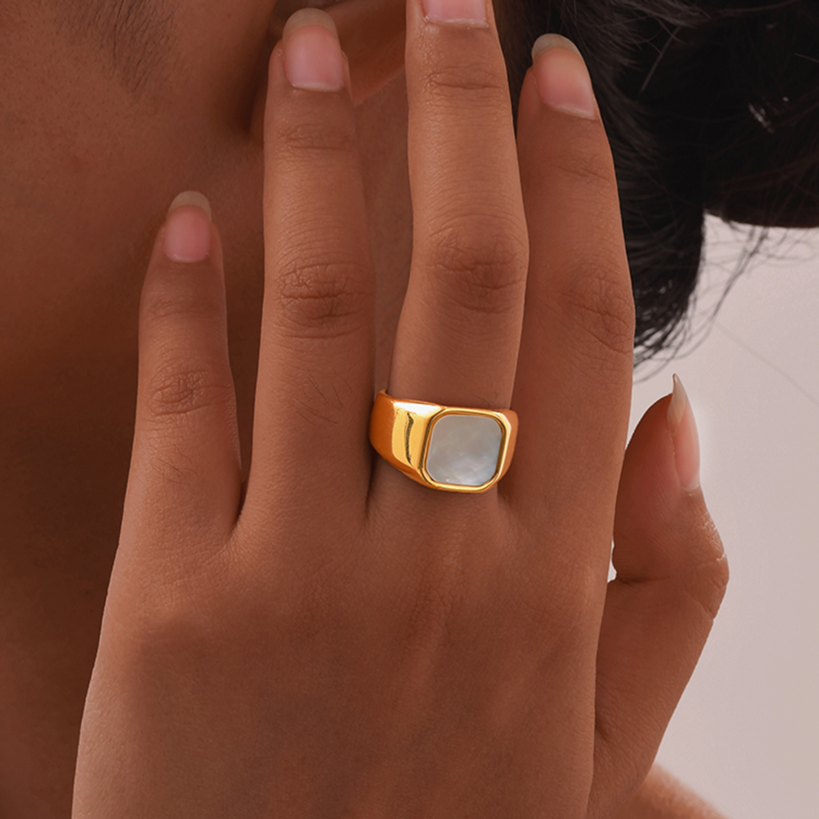 Bague en acier inoxydable, Acier inoxydable 304, avec coquille, bijoux de mode & normes différentes pour le choix & pour femme, doré, Vendu par PC