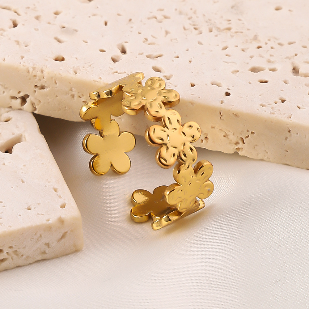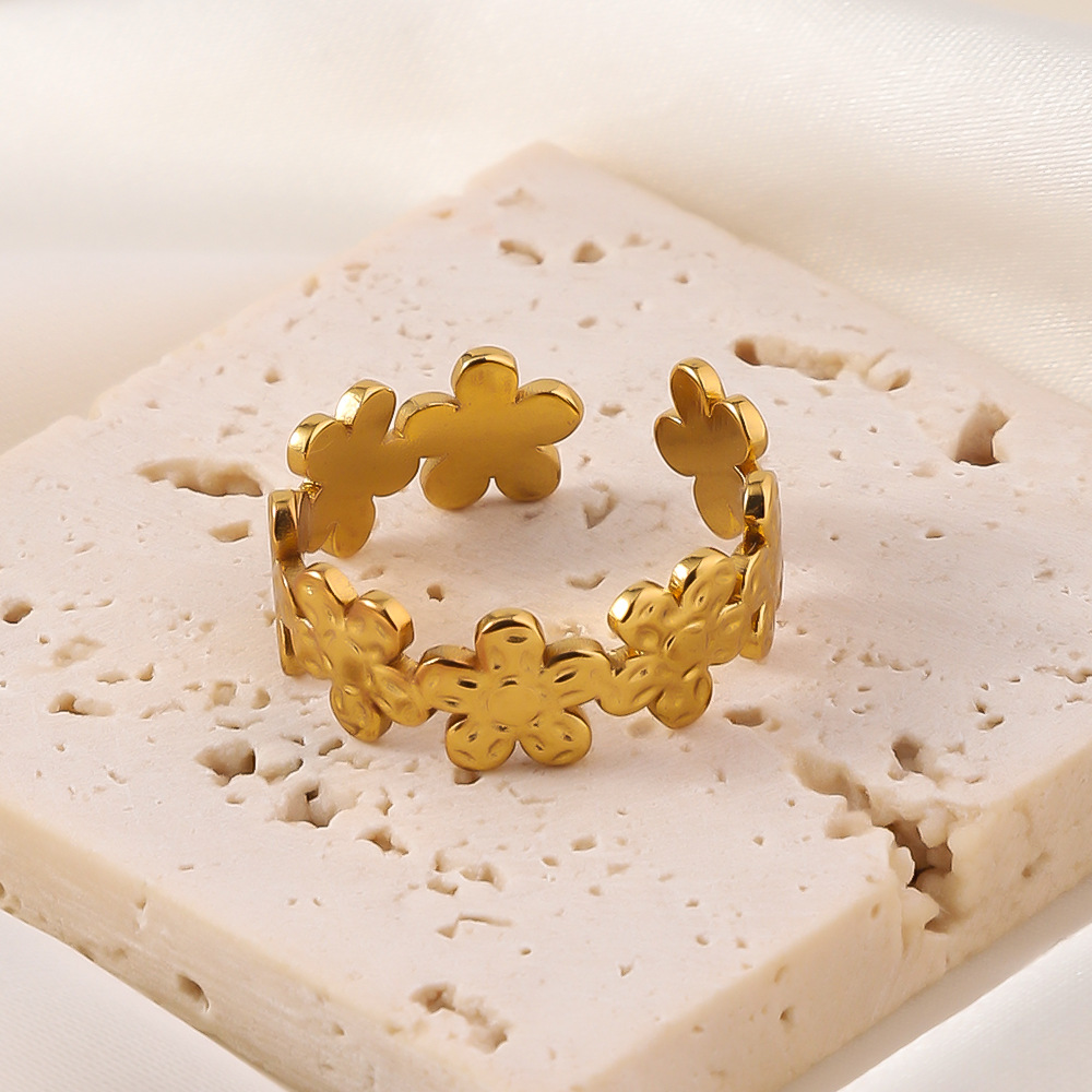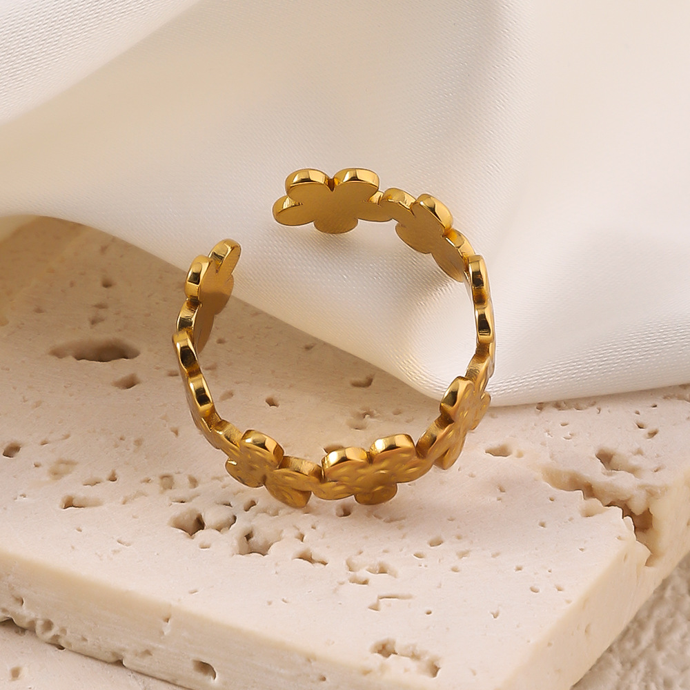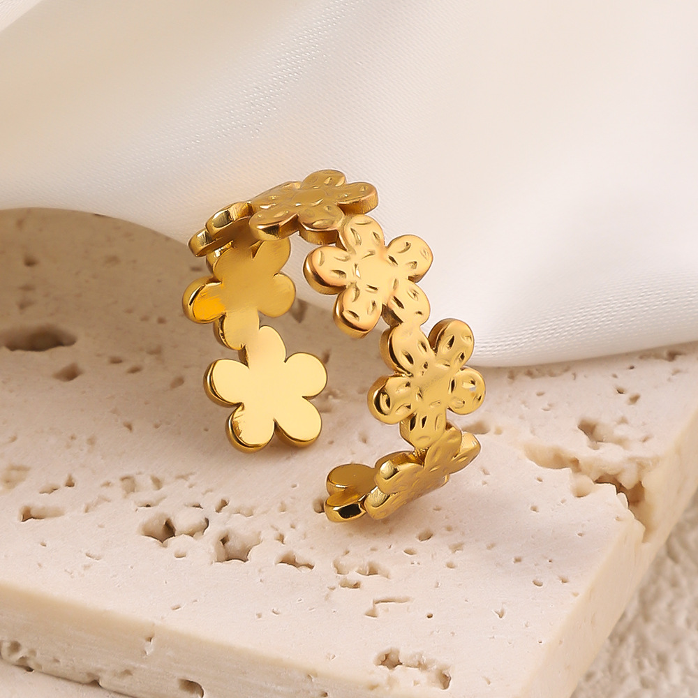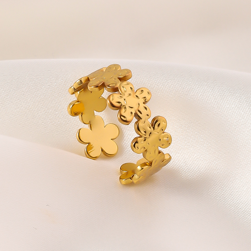 Bague en acier inoxydable, Acier inoxydable 304, fleur, Plaqué or 18K, Réglable & bijoux de mode & pour femme, doré, Vendu par PC