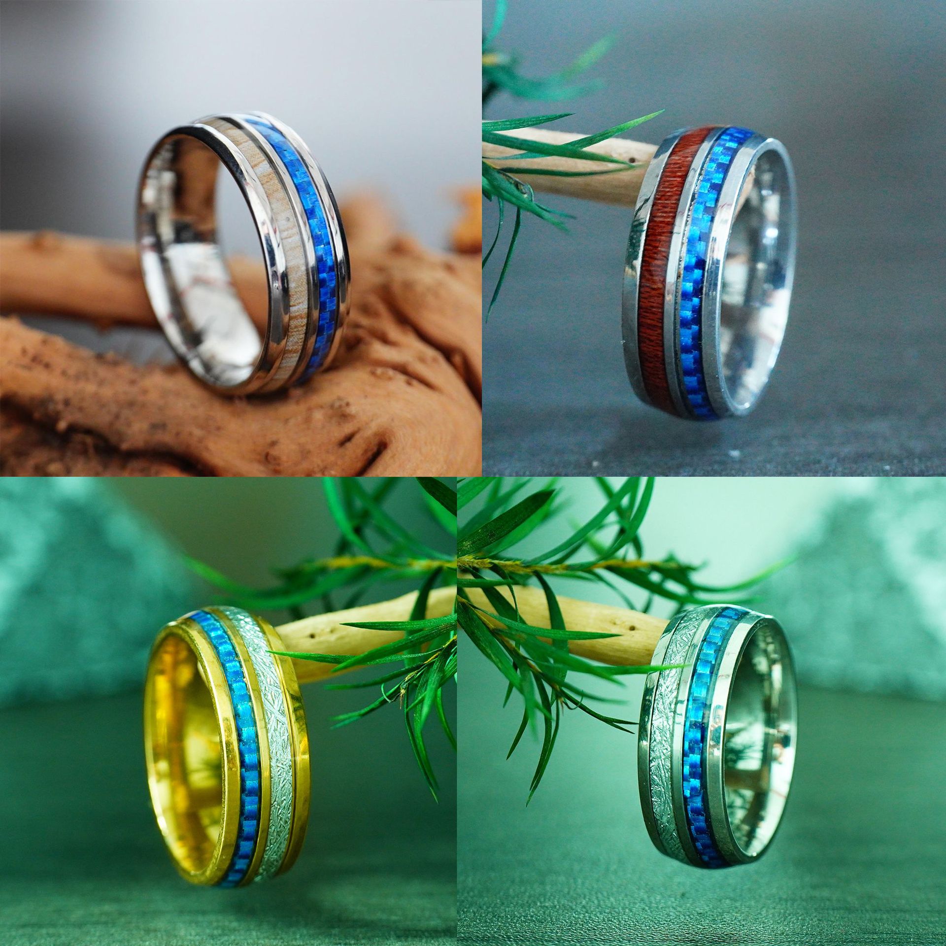 Bague en acier inoxydable, Acier inoxydable 304, avec Fibre de carbone & bois, goutté d'époxy, bijoux de mode & normes différentes pour le choix & pour homme, plus de couleurs à choisir, Vendu par PC