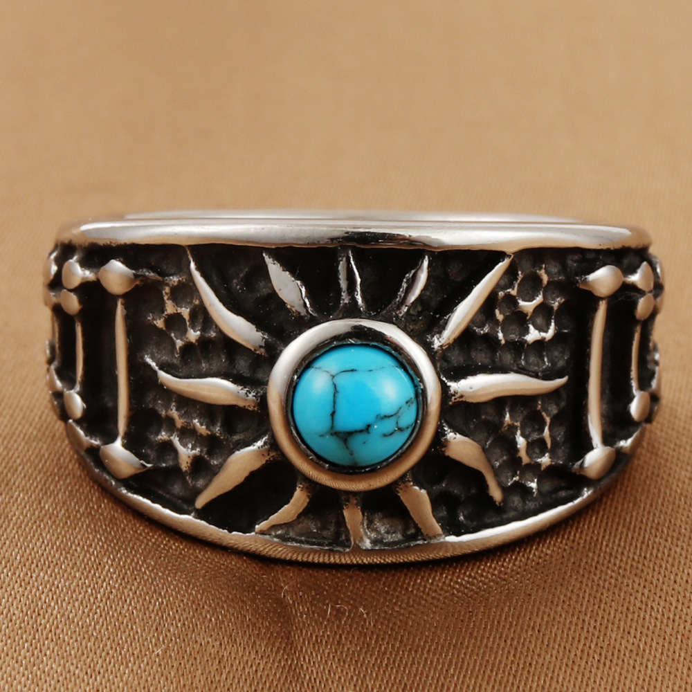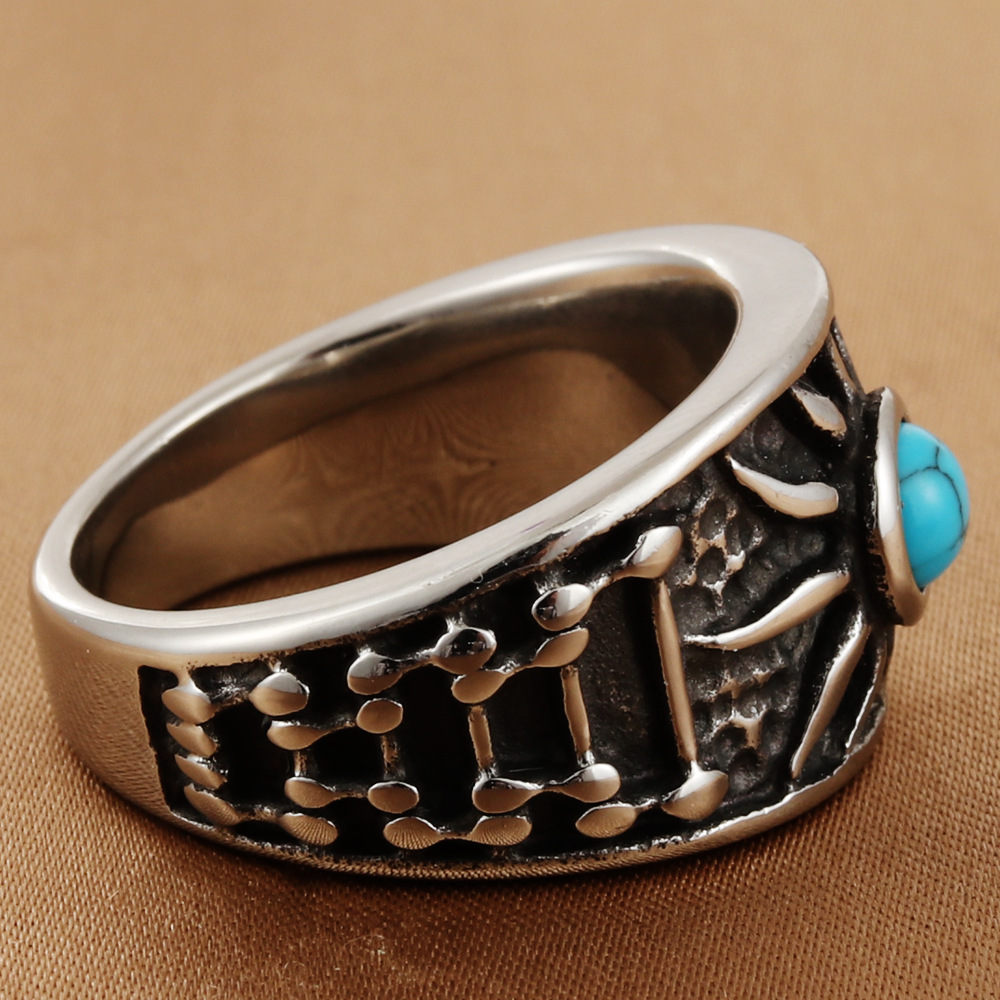 Bague en acier inoxydable, Acier inoxydable 316, avec turquoise synthétique, poli, différents matériaux pour le choix & normes différentes pour le choix & pour homme, plus de couleurs à choisir, Vendu par PC