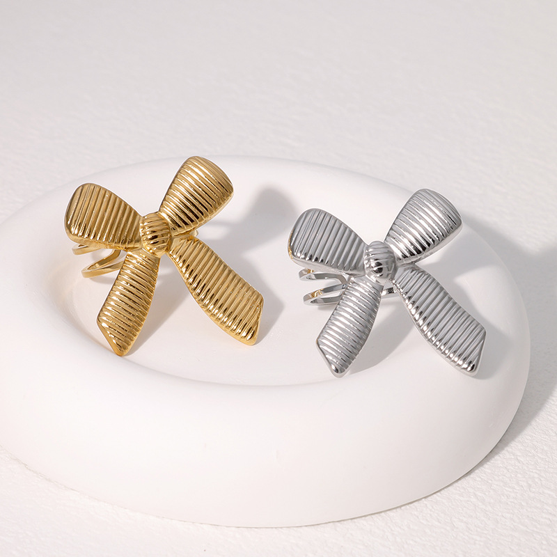Bague en acier inoxydable, Acier inoxydable 304, Noeud papillon, Placage, bijoux de mode & pour femme, plus de couleurs à choisir, Vendu par PC