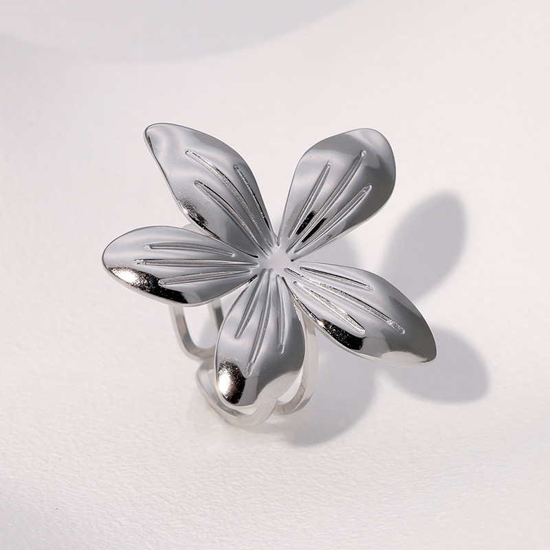 Bague en acier inoxydable, Acier inoxydable 304, fleur, Placage, bijoux de mode & pour femme & creux, plus de couleurs à choisir, Vendu par PC