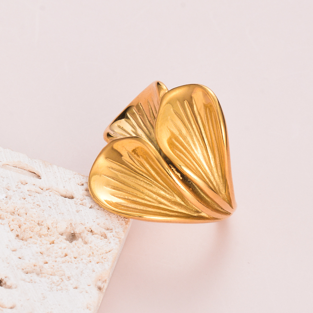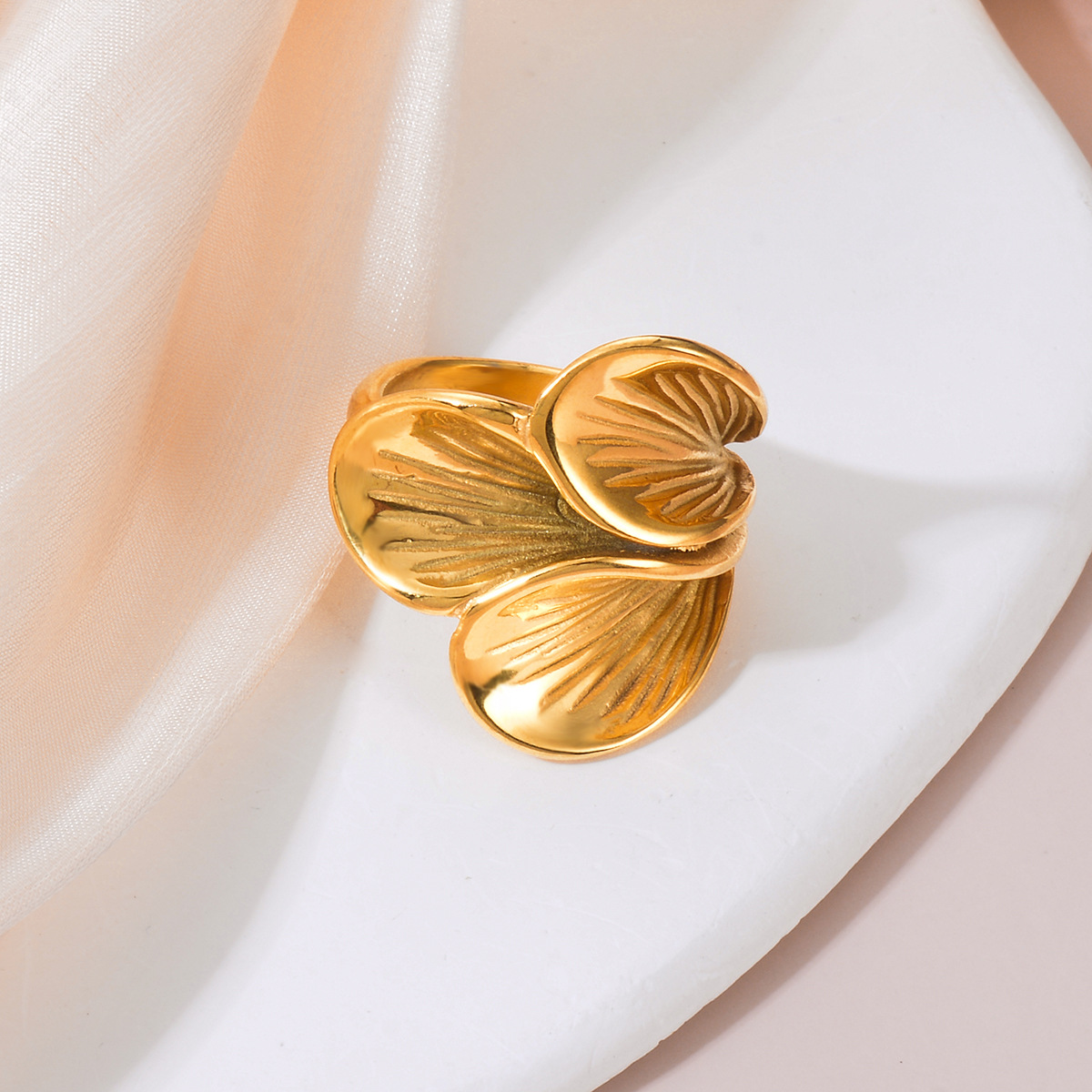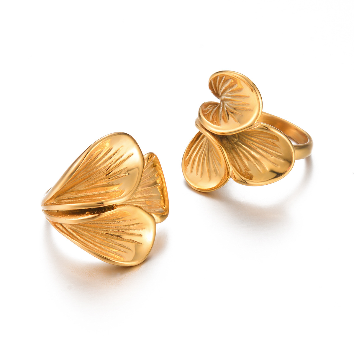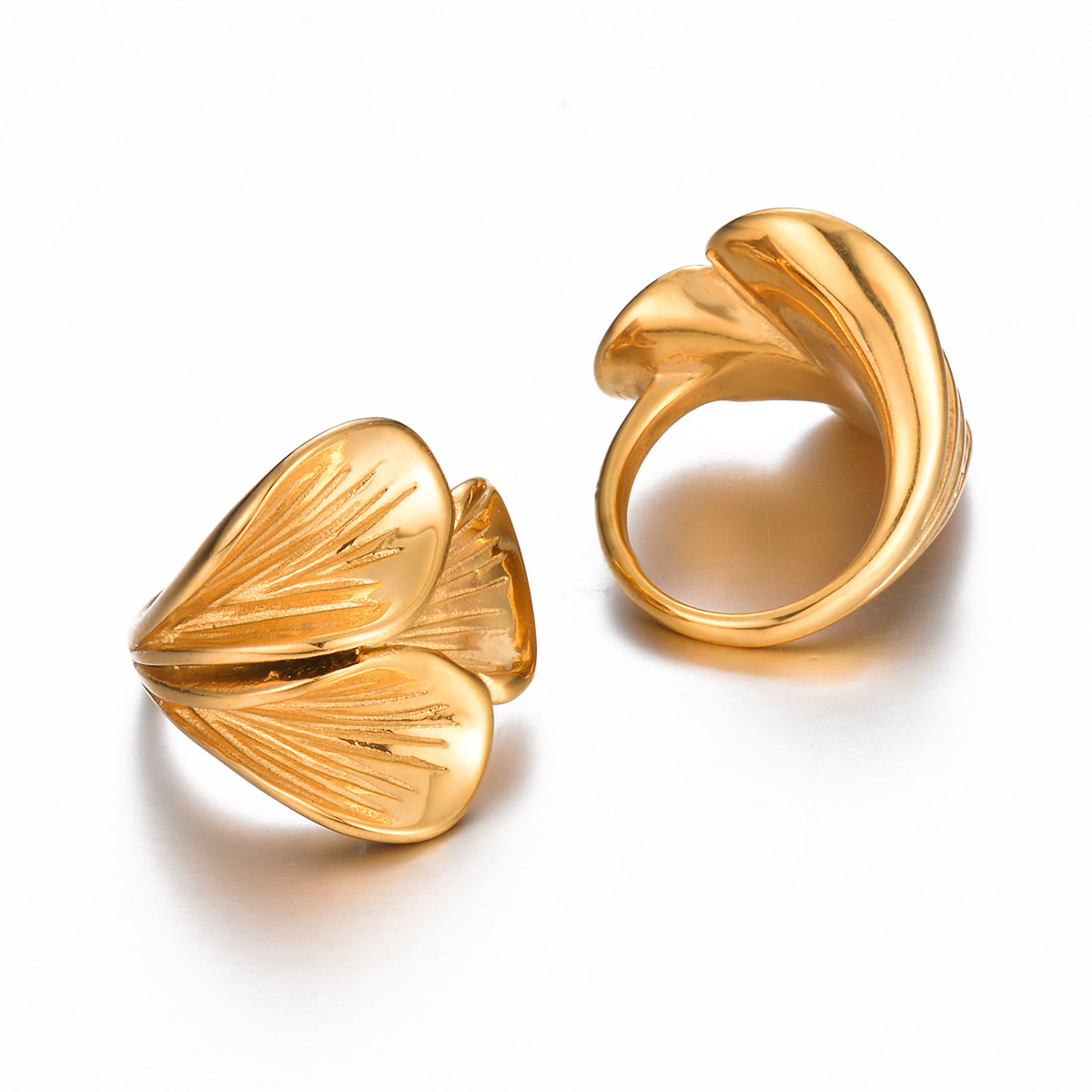Bague en acier inoxydable, Acier inoxydable 304, Pétales, Placage de couleur d'or, normes différentes pour le choix & pour femme, plus de couleurs à choisir, Vendu par PC
