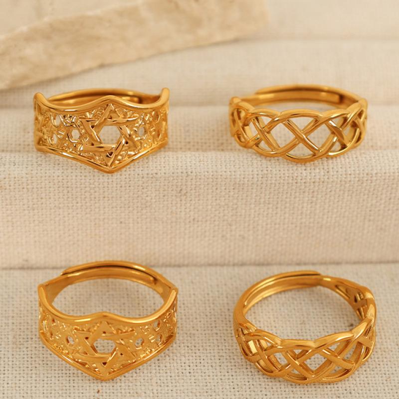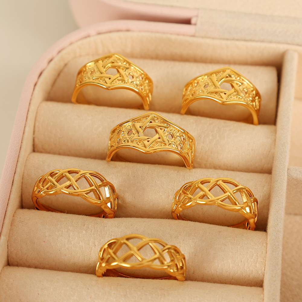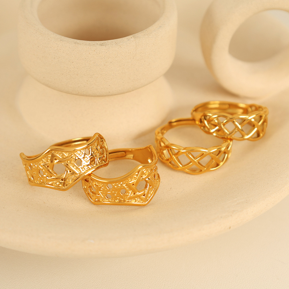 Bague en acier inoxydable, Acier inoxydable 304, Plaqué or 18K, styles différents pour le choix & pour femme & creux, Taille:6, Vendu par PC
