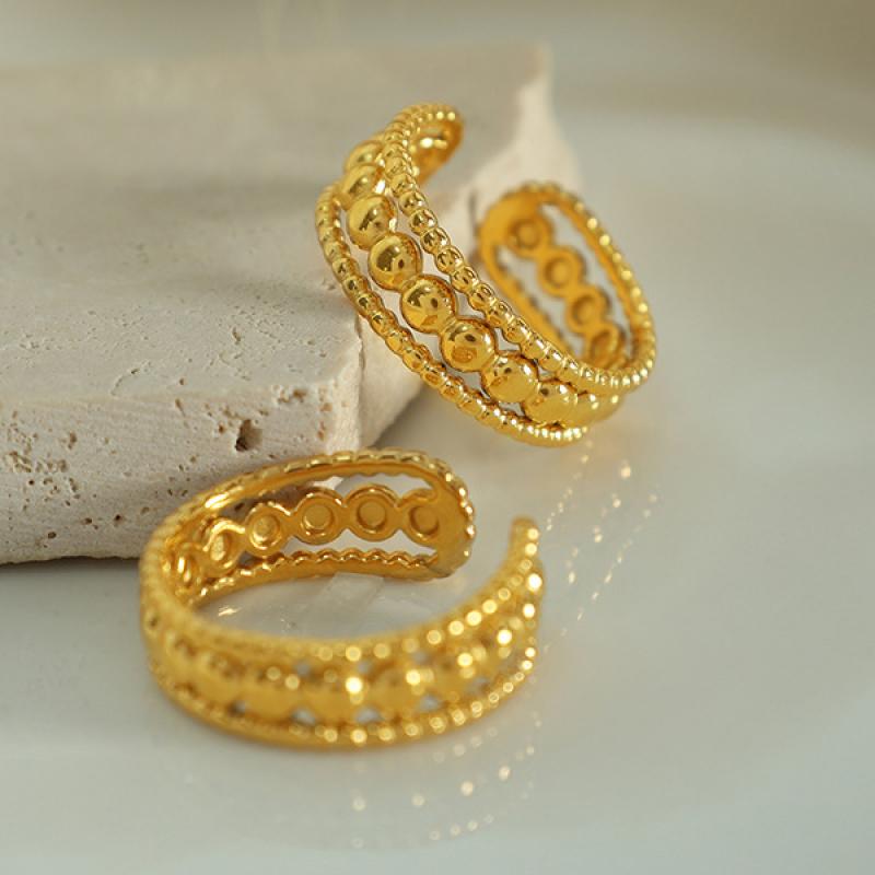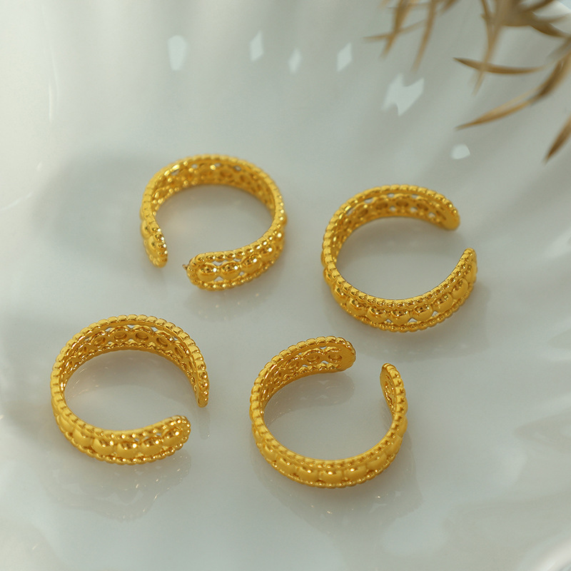 Bague en acier inoxydable, Acier inoxydable 304, Placage, bijoux de mode & pour femme & creux, doré, wide:6mm, Taille:7, Vendu par PC
