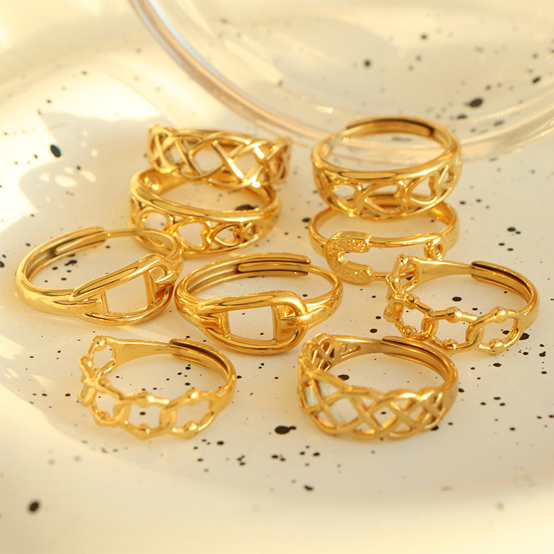 Bague en acier inoxydable, Acier inoxydable 304, Plaqué or 18K, styles différents pour le choix & pour femme & creux, Taille:7, Vendu par PC