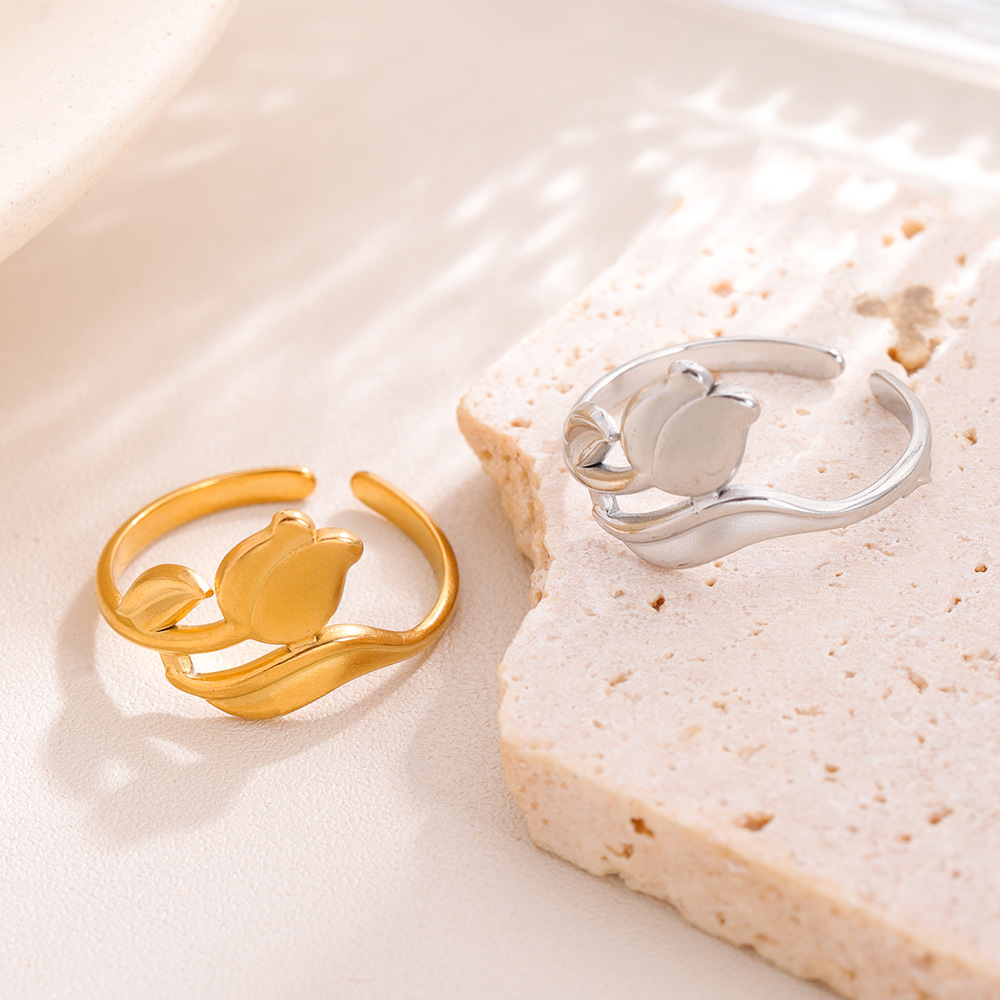 Bague en acier inoxydable, Acier inoxydable 304, fleur, Placage, bijoux de mode & pour femme & creux, plus de couleurs à choisir, Vendu par PC