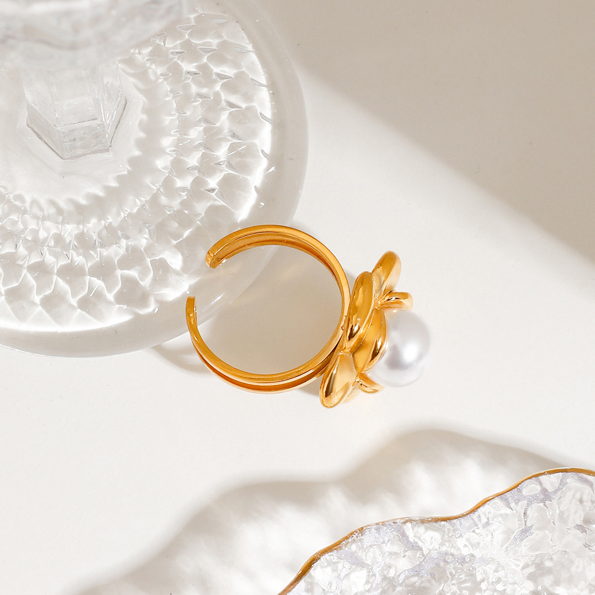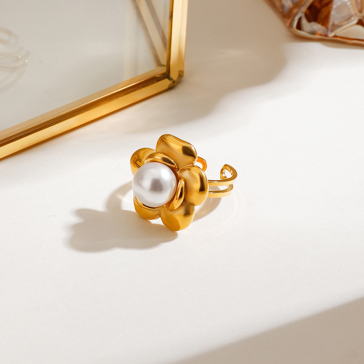 Bague en acier inoxydable, Acier inoxydable 304, avec perle de plastique, Placage de couleur d'or, bijoux de mode, doré, Vendu par PC