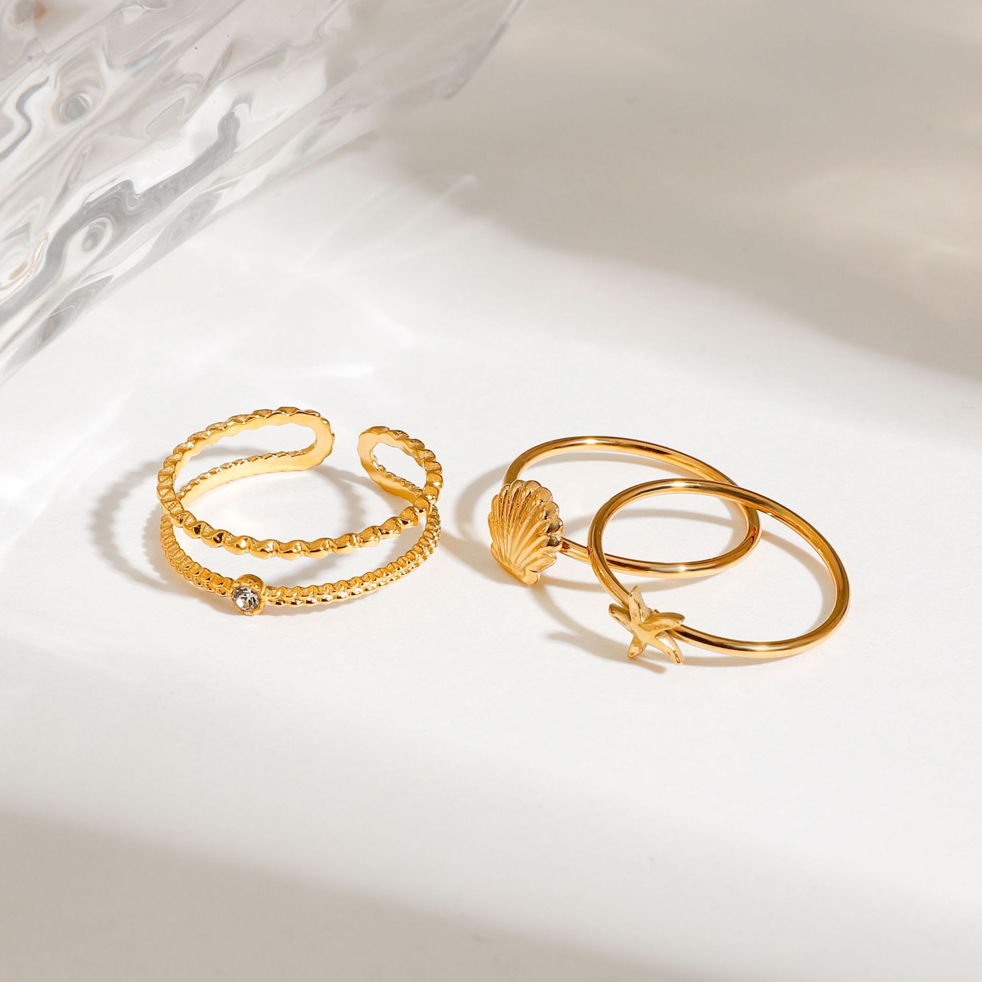 Bague en acier inoxydable , Acier inoxydable 304, Placage de couleur d'or, trois pièces & bijoux de mode & avec strass, doré, Vendu par fixé