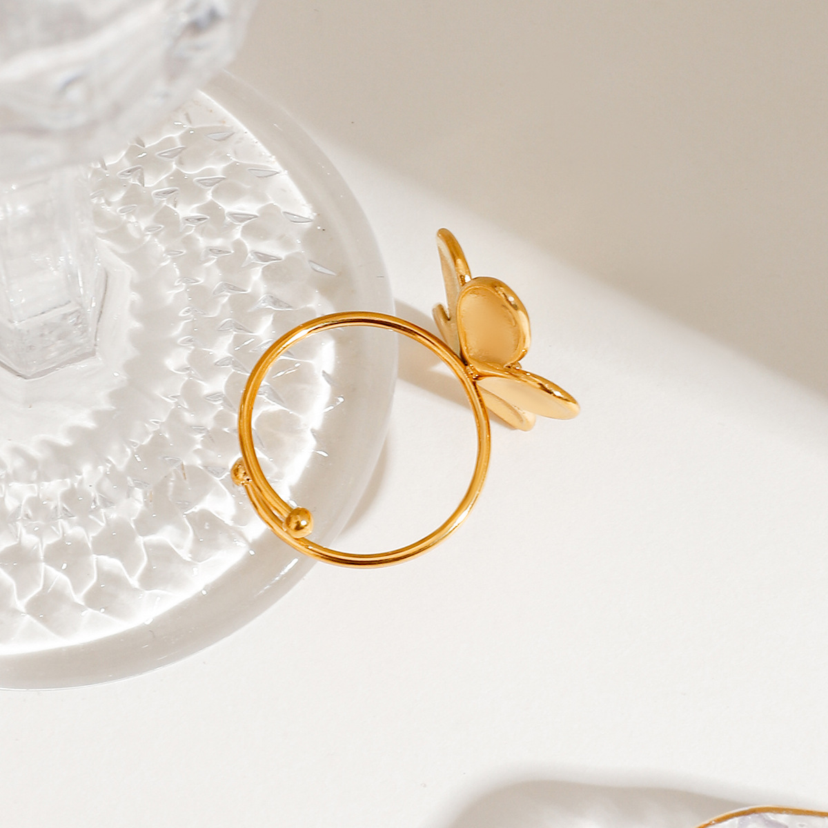 Bague en acier inoxydable, Acier inoxydable 304, fleur, Placage de couleur d'or, bijoux de mode, doré, Vendu par PC