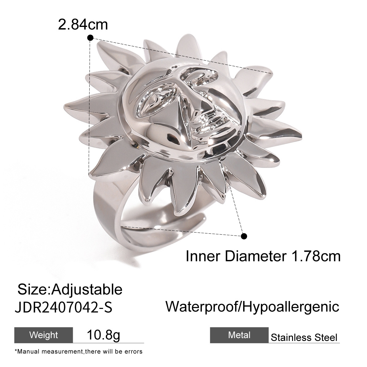 Bague en acier inoxydable, Acier inoxydable 304, soleil, Placage, pour femme, plus de couleurs à choisir, Vendu par PC