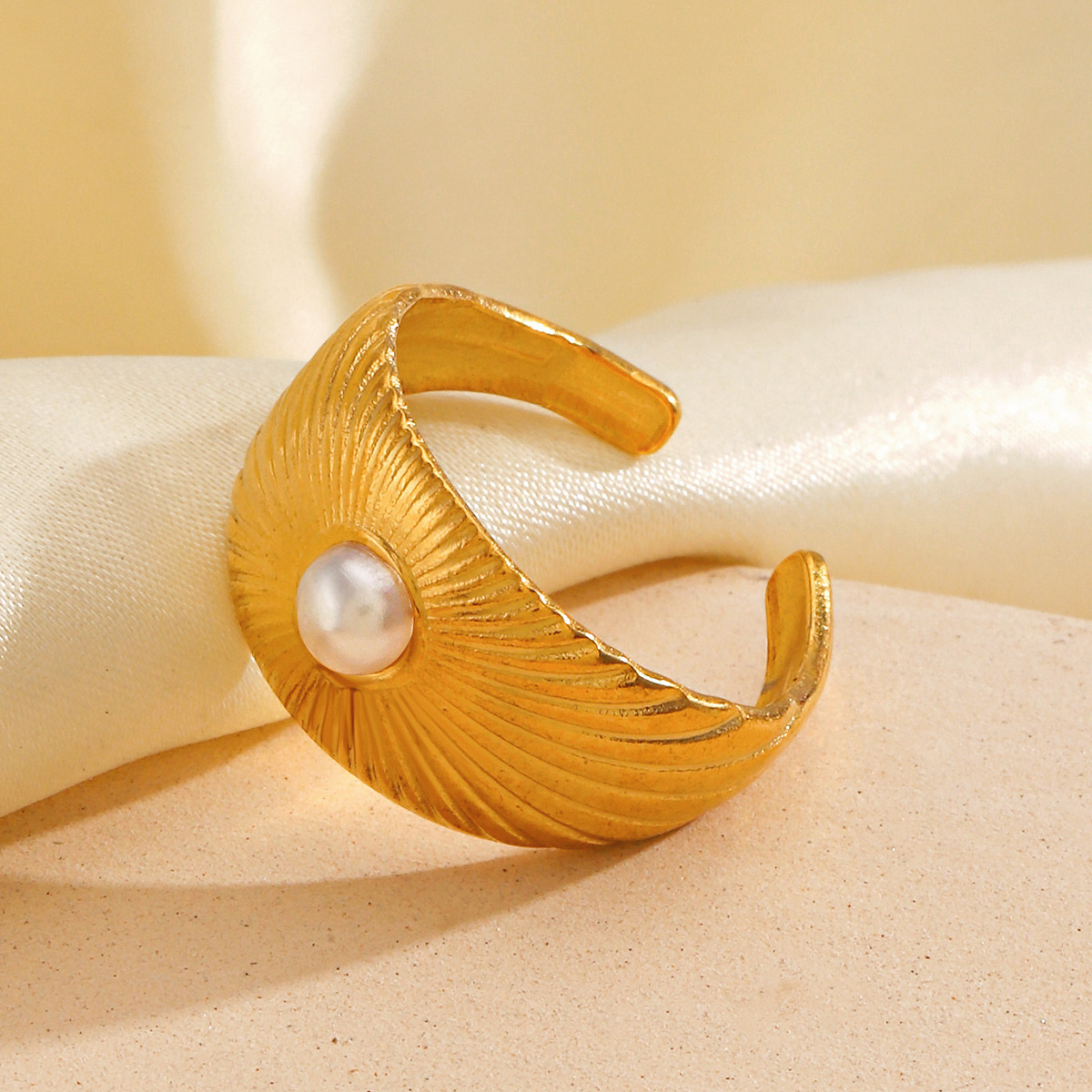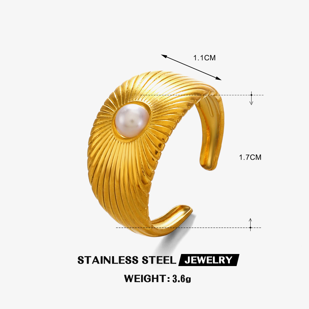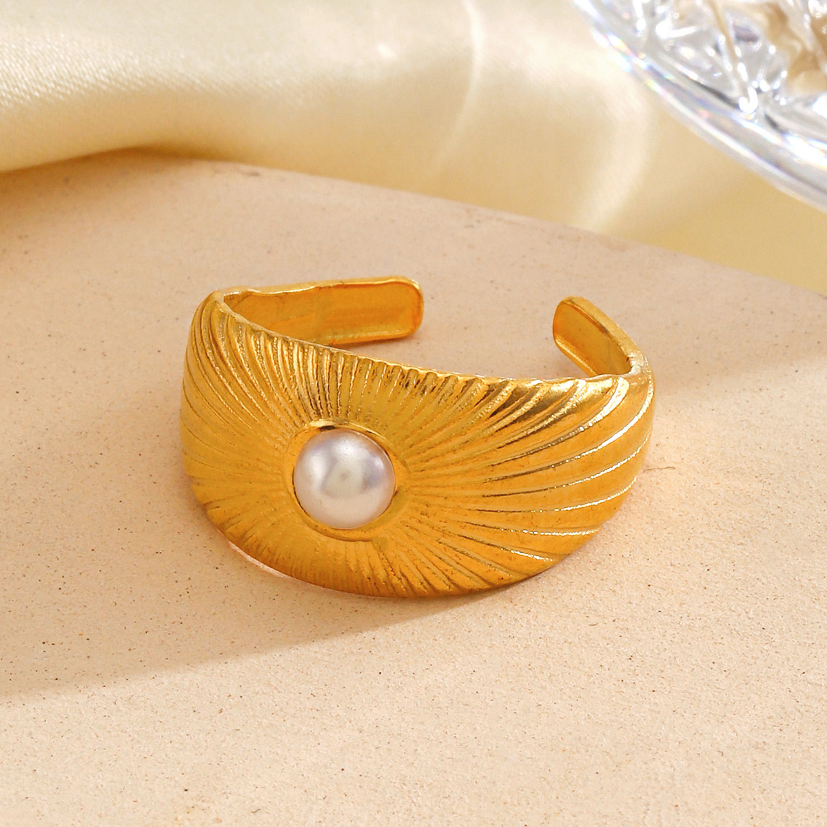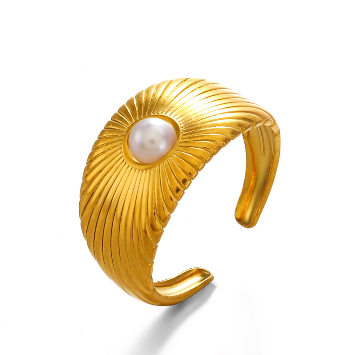 Bague en acier inoxydable, Acier inoxydable 304, avec perle de plastique, Placage, bijoux de mode & pour femme, doré, Vendu par PC