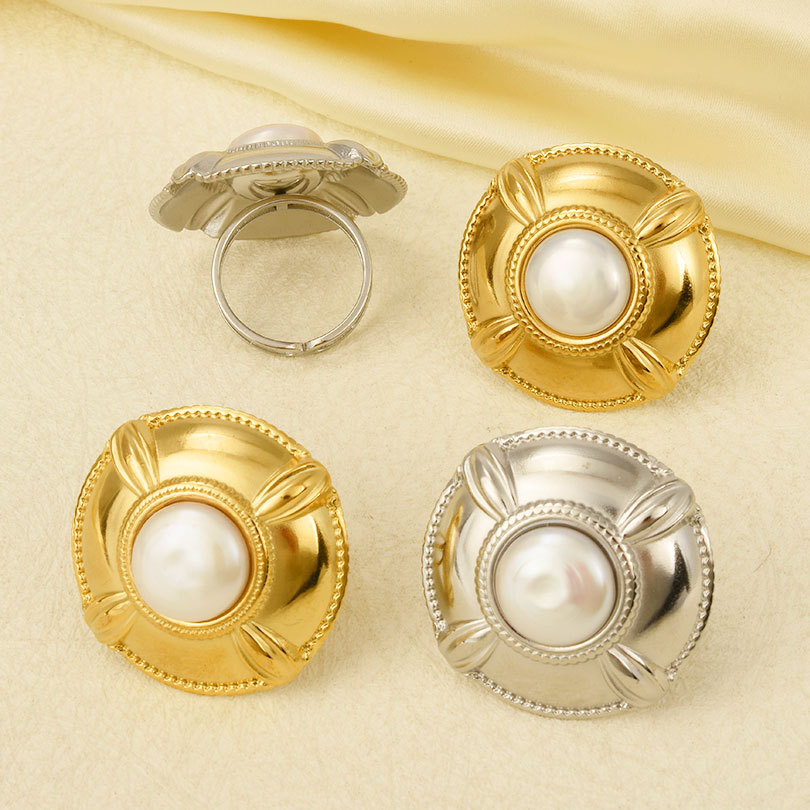 Bague en acier inoxydable, Acier inoxydable 304, avec perle de plastique, Rond, Placage, pour femme, plus de couleurs à choisir, Vendu par PC