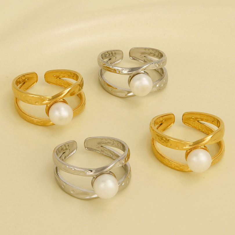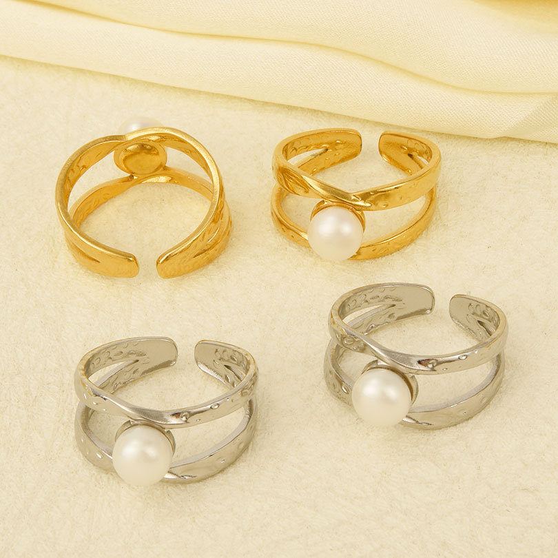 Bague en acier inoxydable, Acier inoxydable 304, avec perle de plastique, Placage, pour femme, plus de couleurs à choisir, Vendu par PC