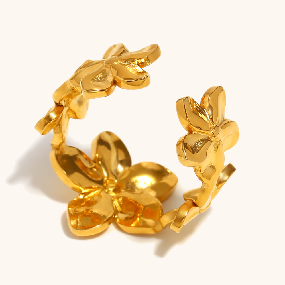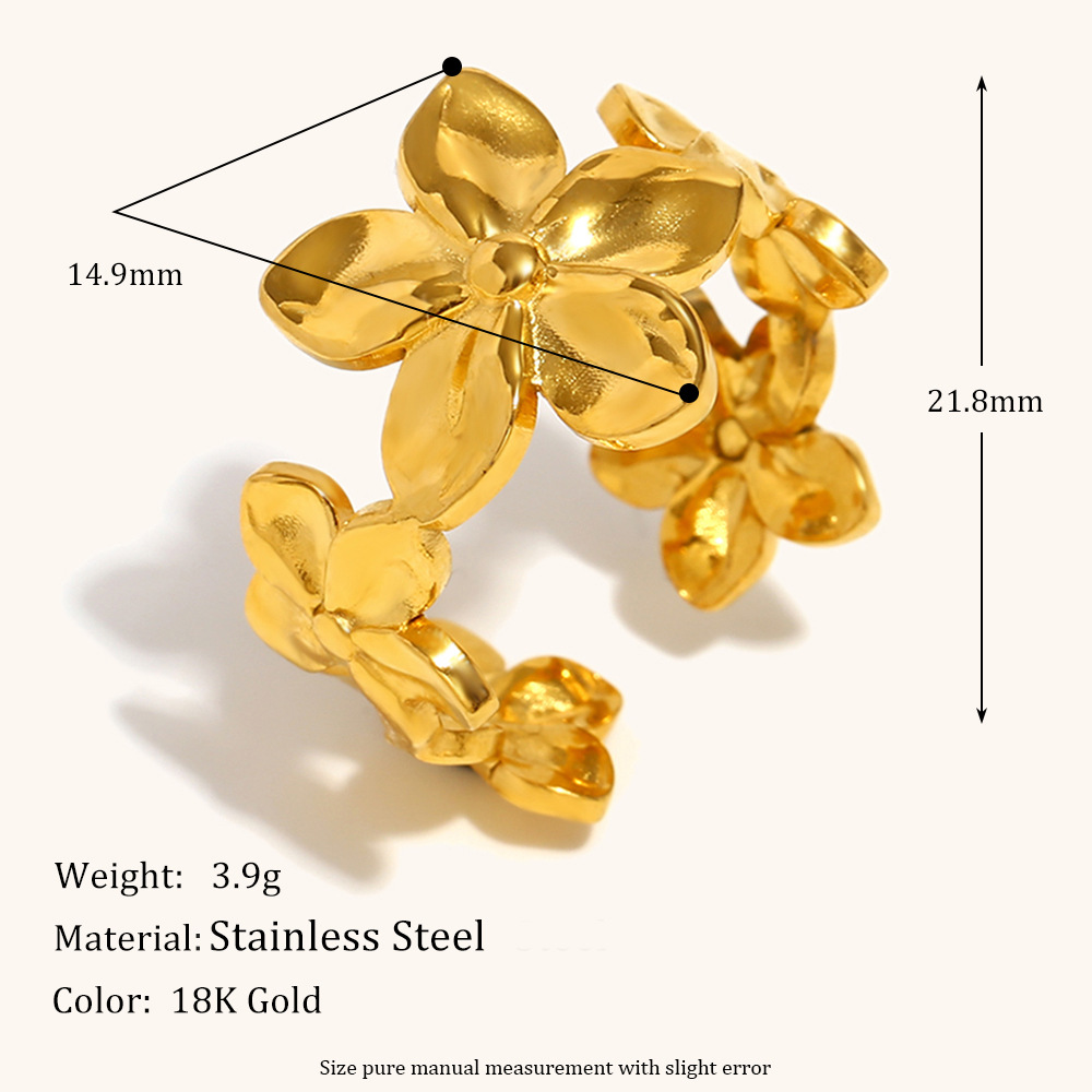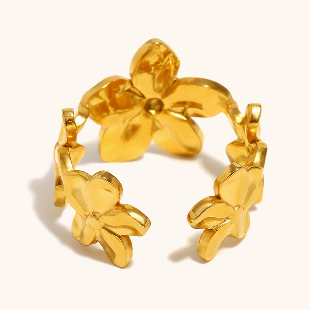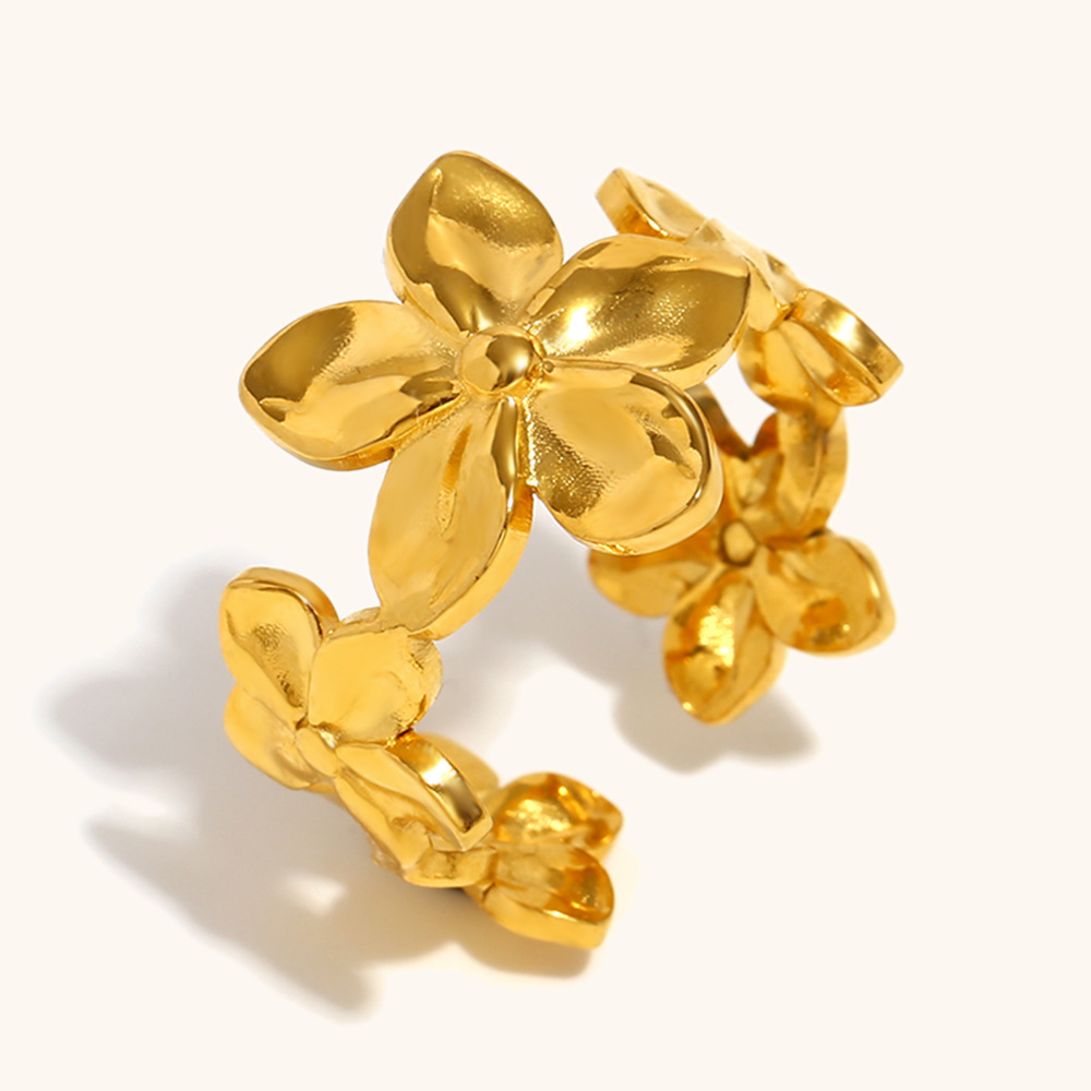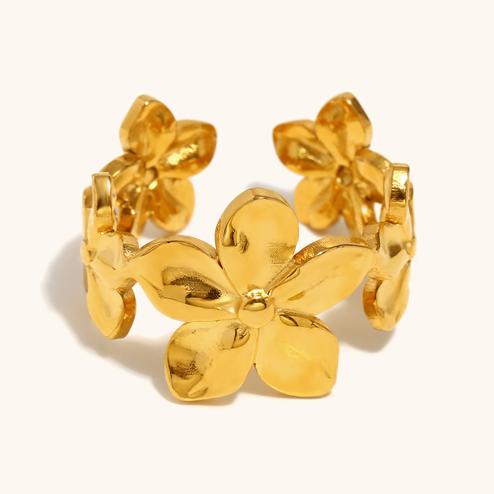 Bague en acier inoxydable, Acier inoxydable 304, fleur, Placage de couleur d'or, pour femme, Vendu par PC