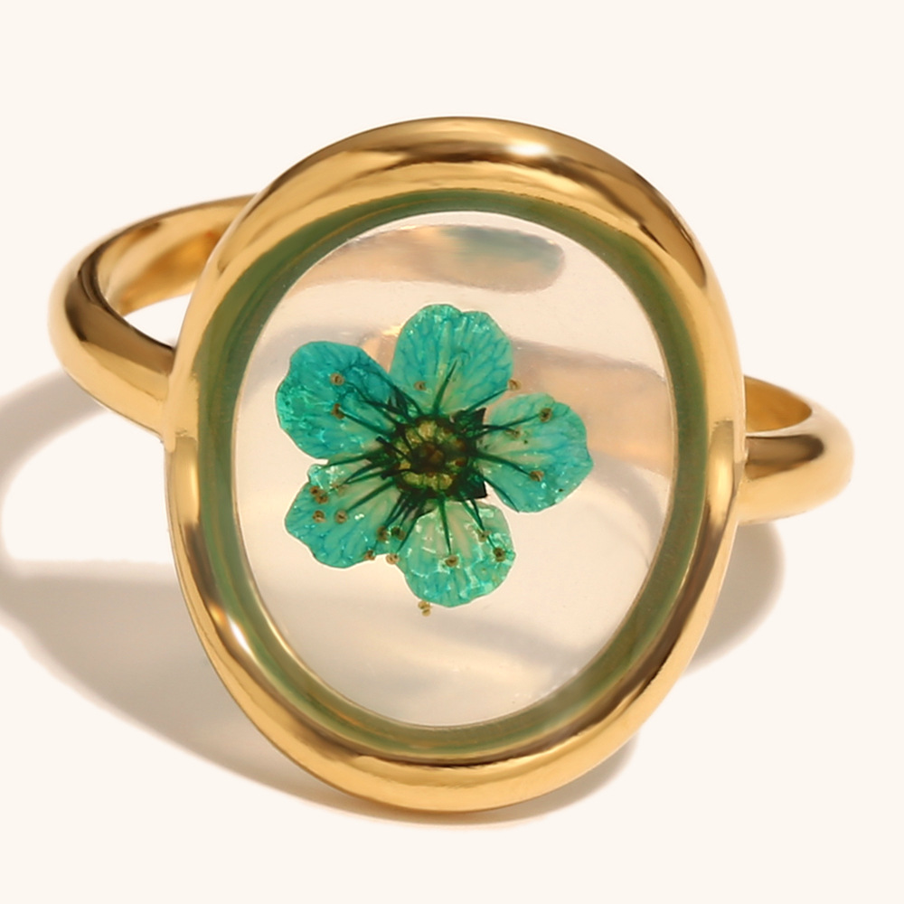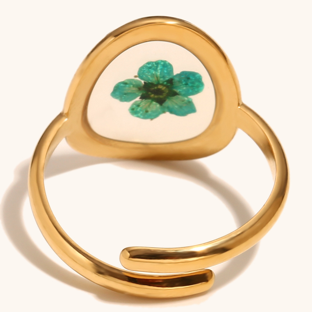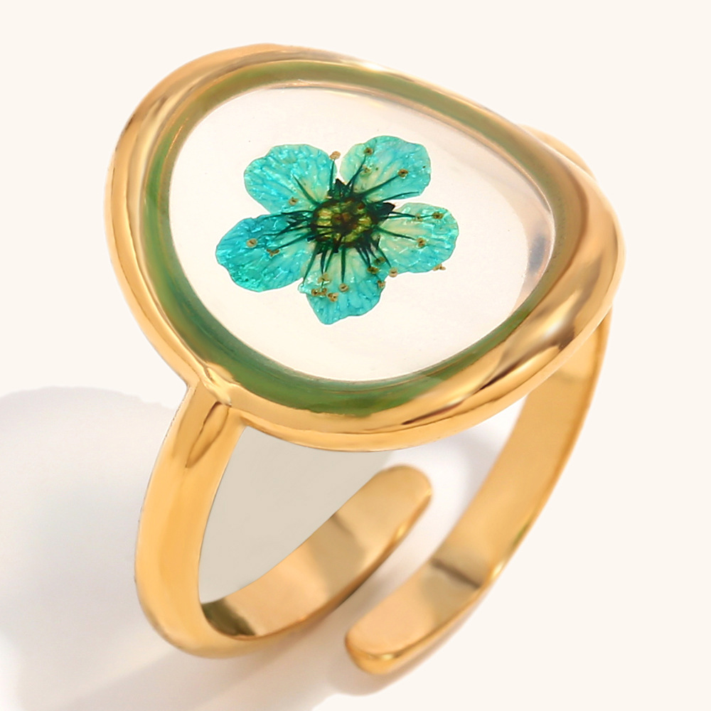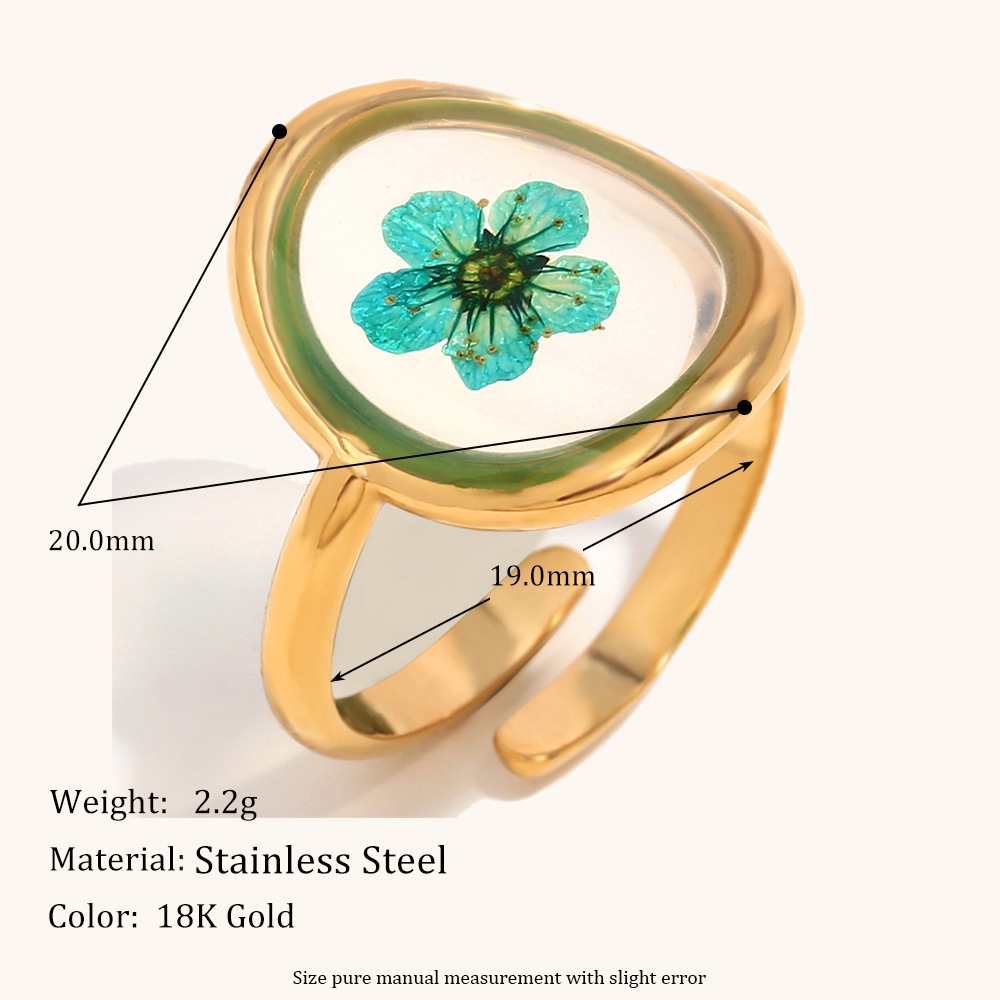 Bague en acier inoxydable, Acier inoxydable 304, avec Fleurs séchées & Acrylique, Placage de couleur d'or, pour femme, Vendu par PC