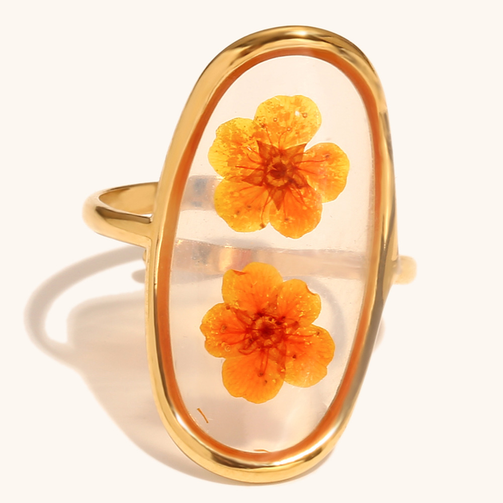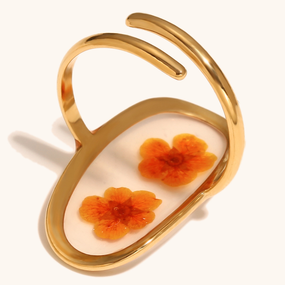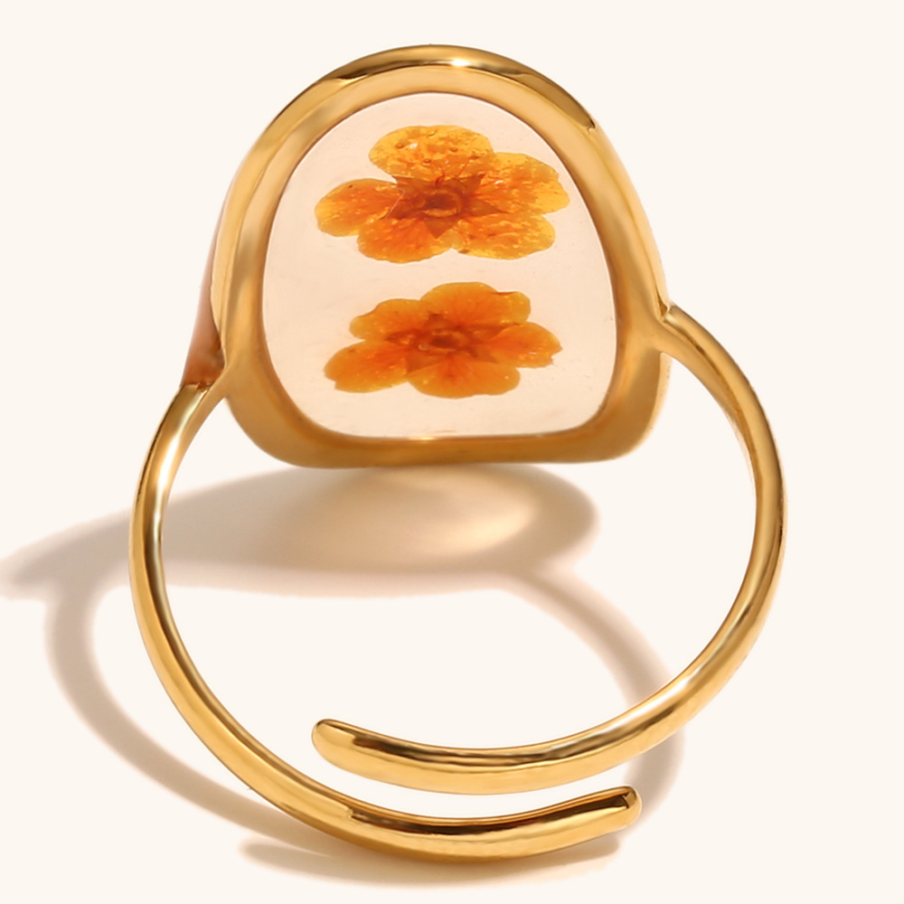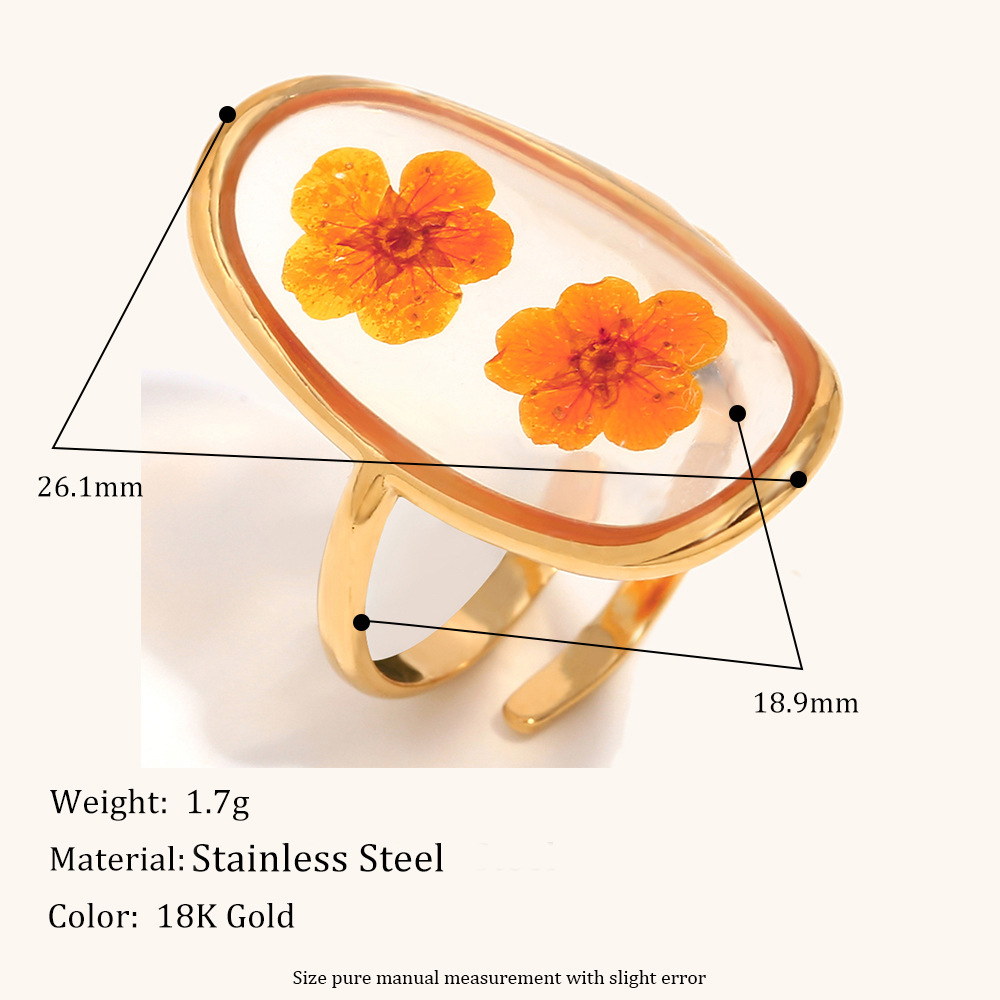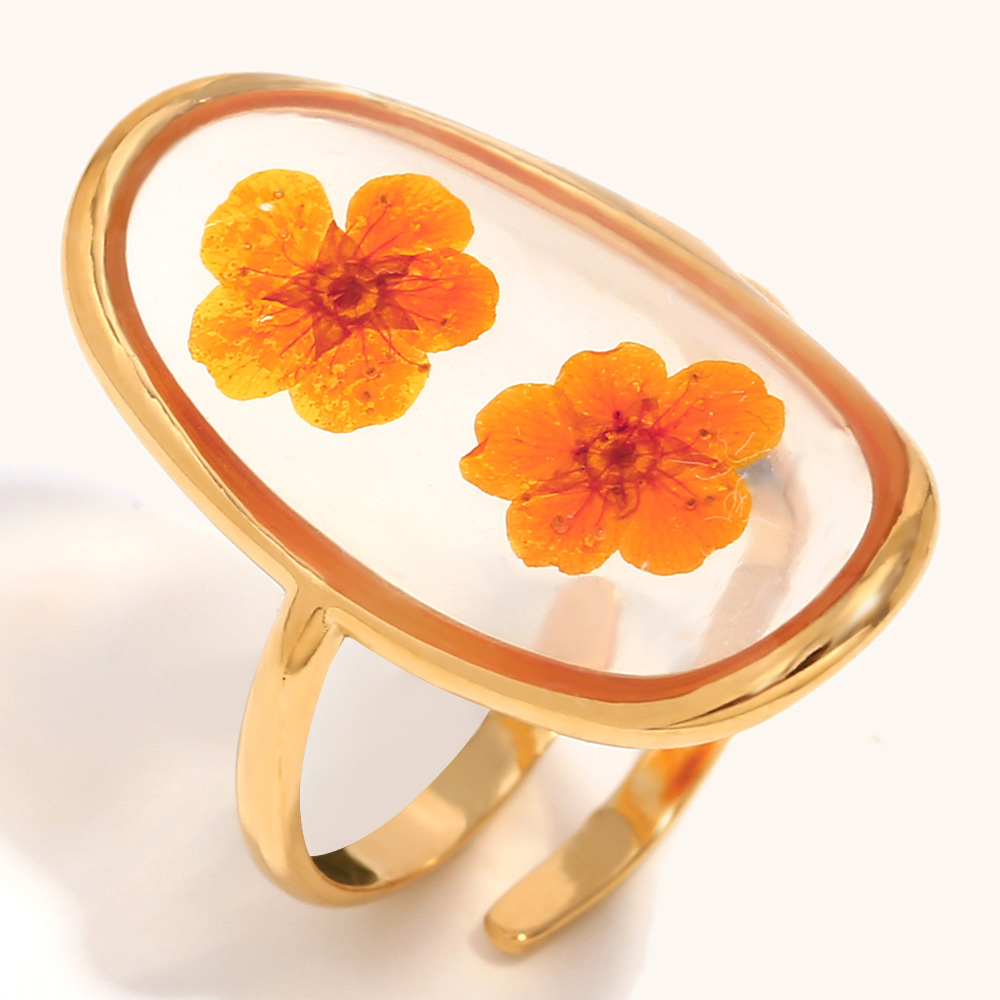 Bague en acier inoxydable, Acier inoxydable 304, avec Fleurs séchées & Acrylique, Placage de couleur d'or, pour femme, Vendu par PC