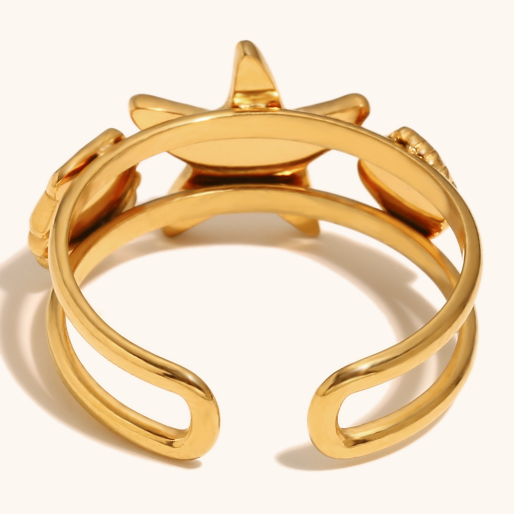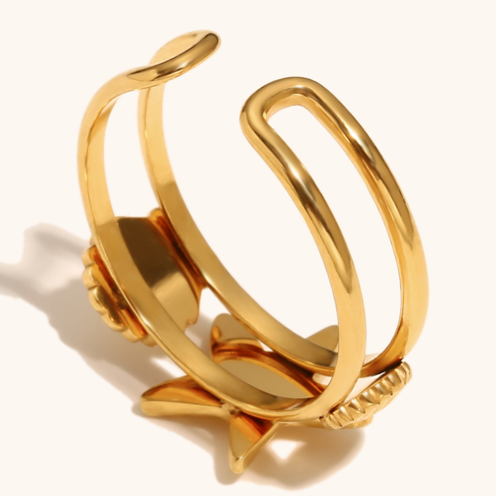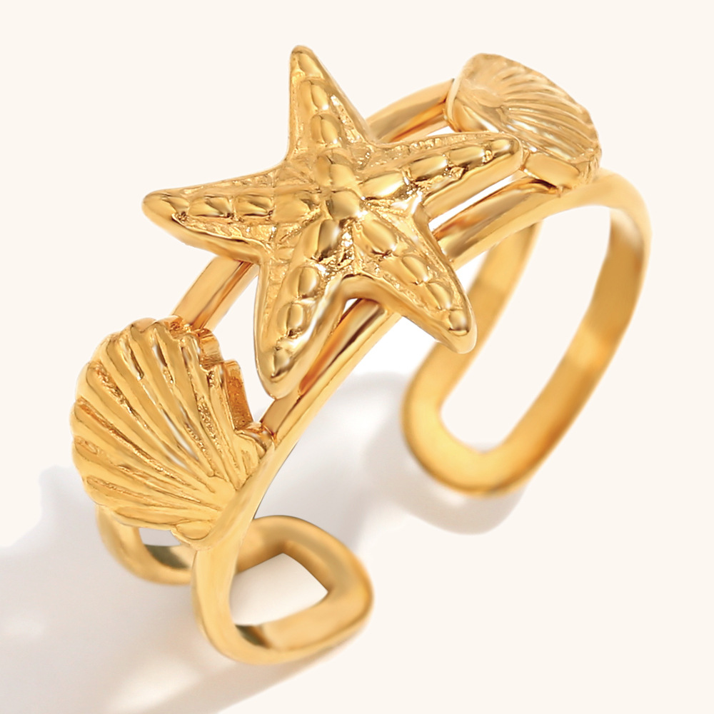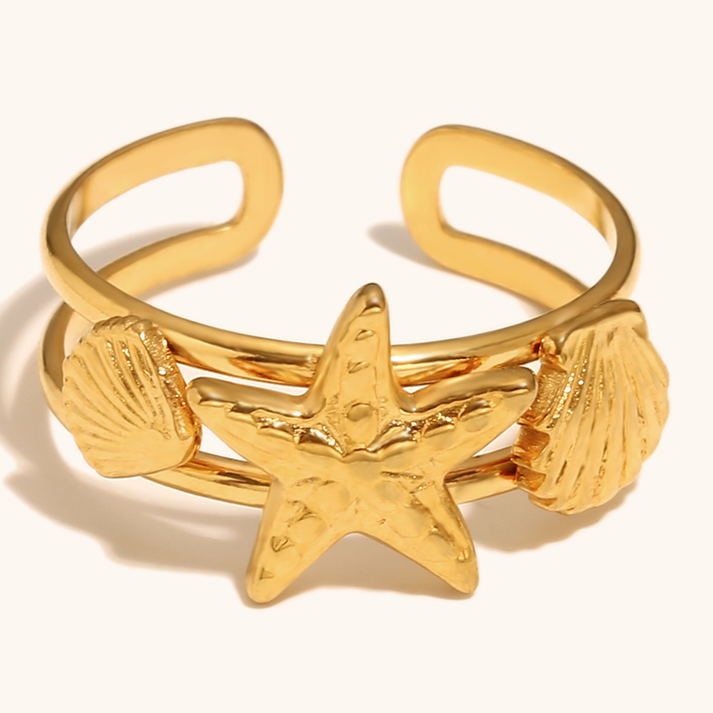 Bague en acier inoxydable, Acier inoxydable 304, étoile de mer, Placage de couleur d'or, pour femme, Vendu par PC