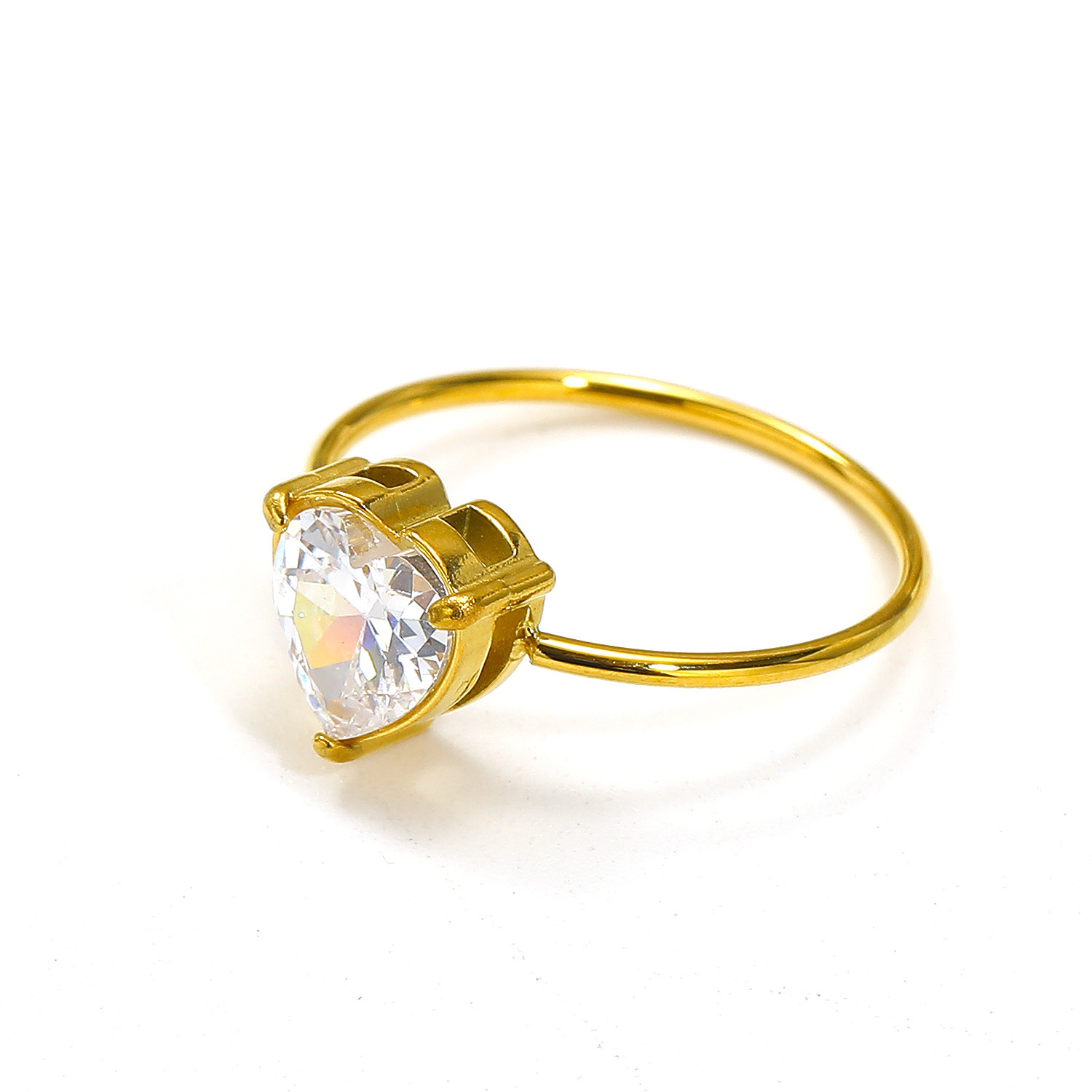 Bague en acier inoxydable , pour femme & avec strass, doré, 4mm îte, Vendu par boîte
