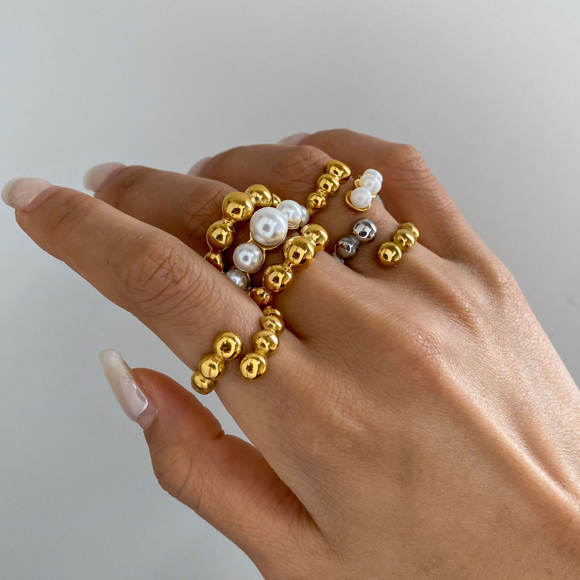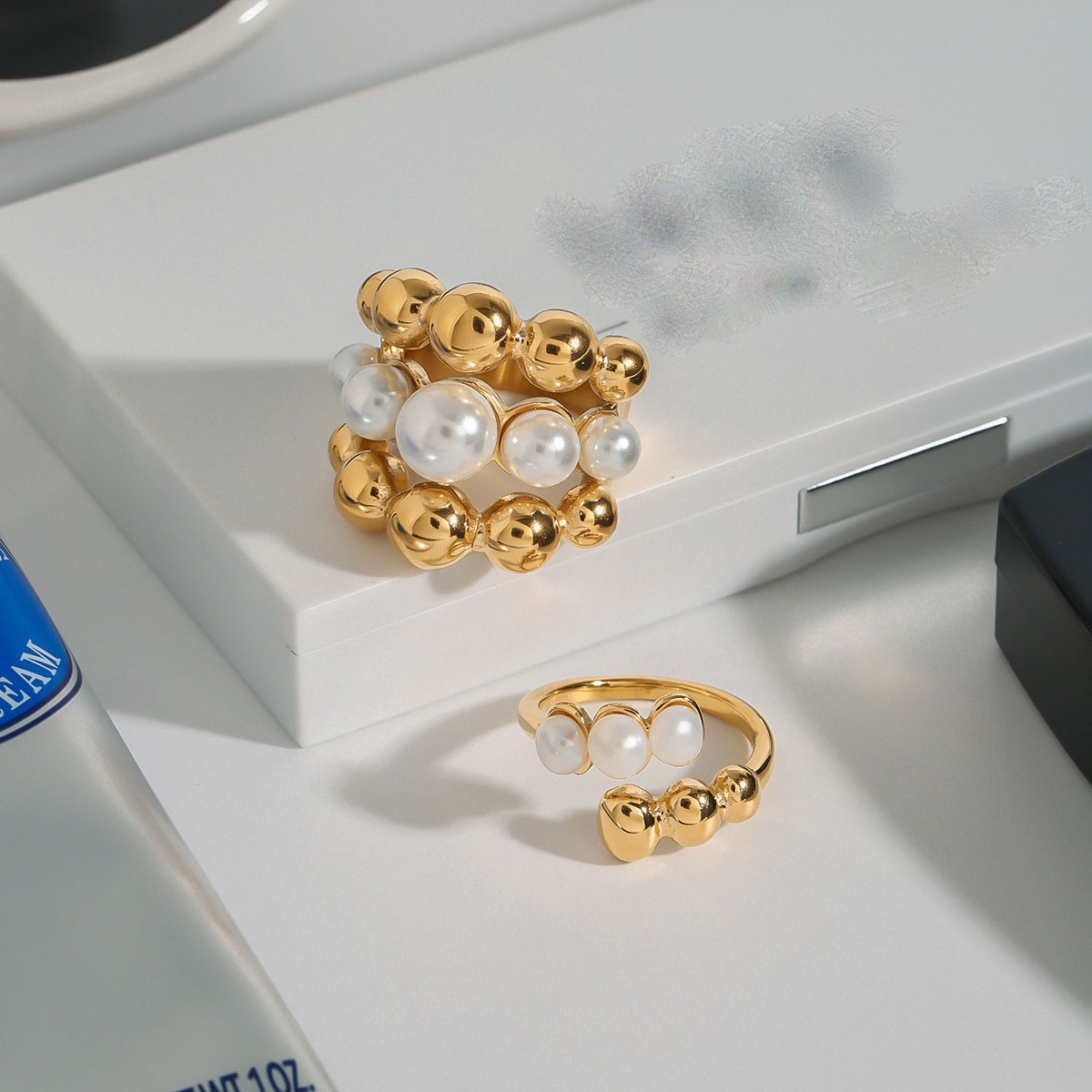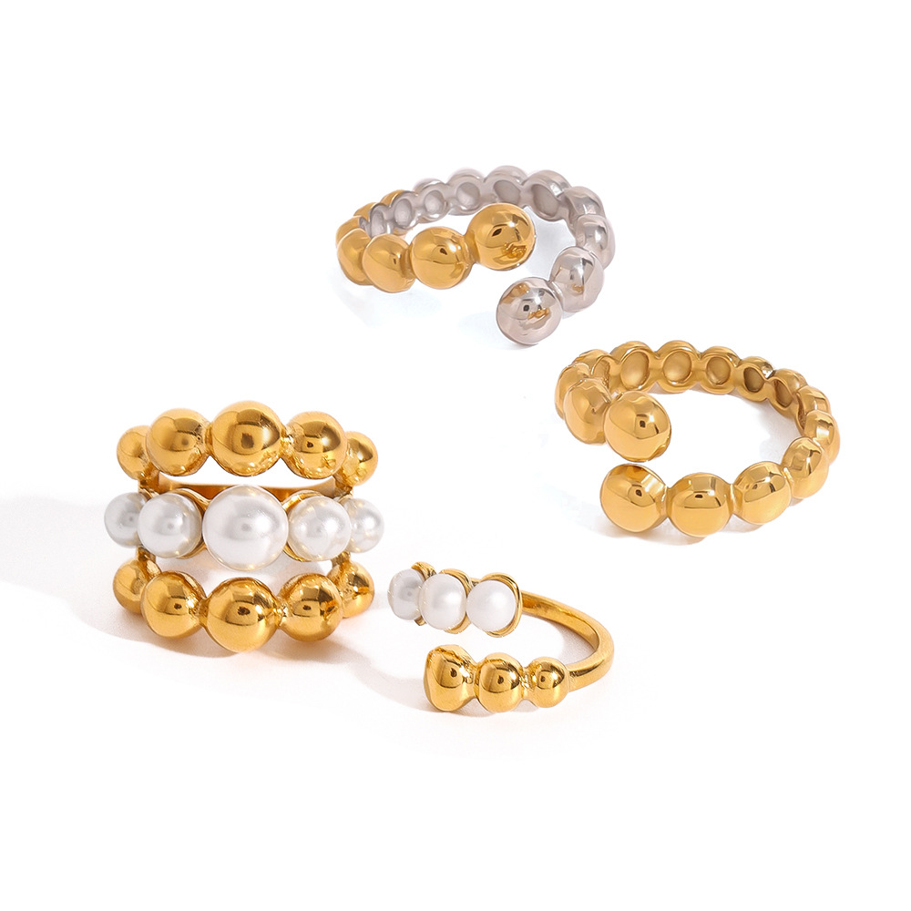 Bague en acier inoxydable, Acier inoxydable 304, avec perle de plastique, Placage, styles différents pour le choix & pour femme & deux tons, Vendu par PC
