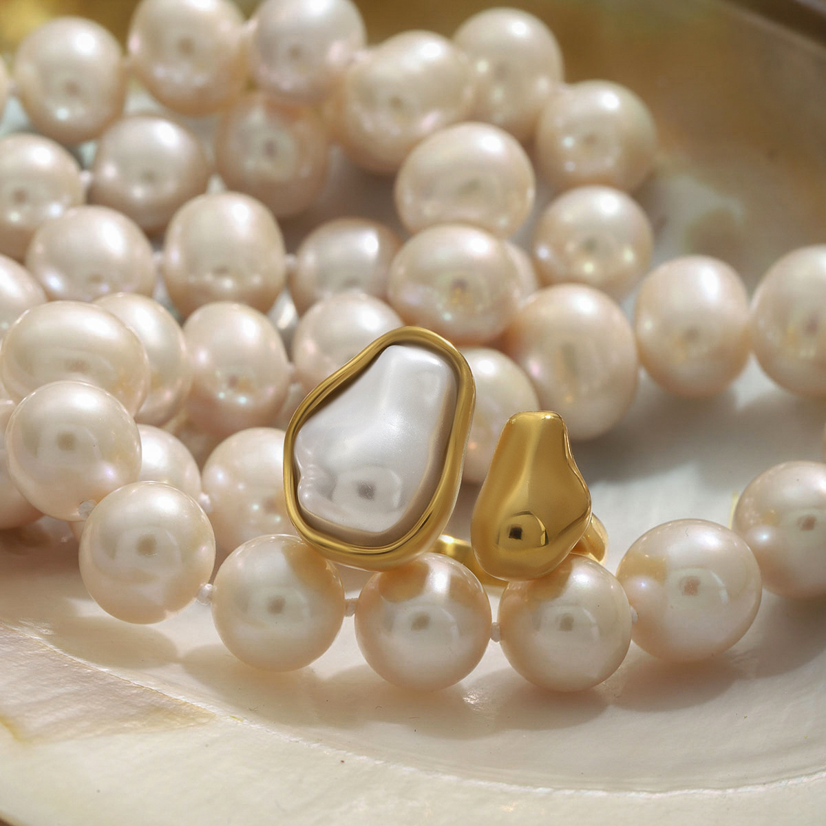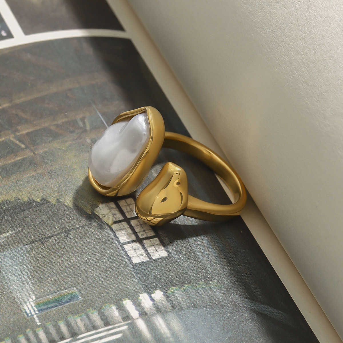 Bague en acier inoxydable, Acier inoxydable 304, avec perle de plastique, Placage, bijoux de mode & pour femme, doré, Vendu par PC