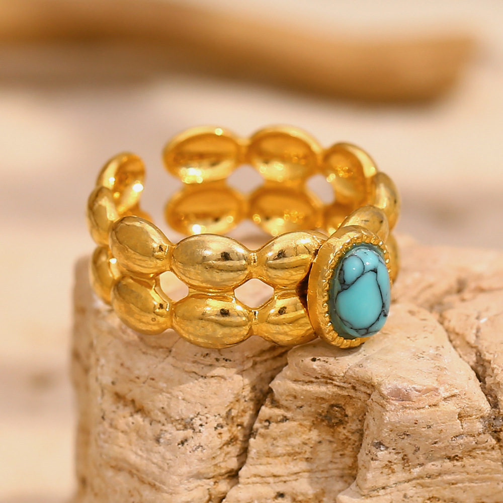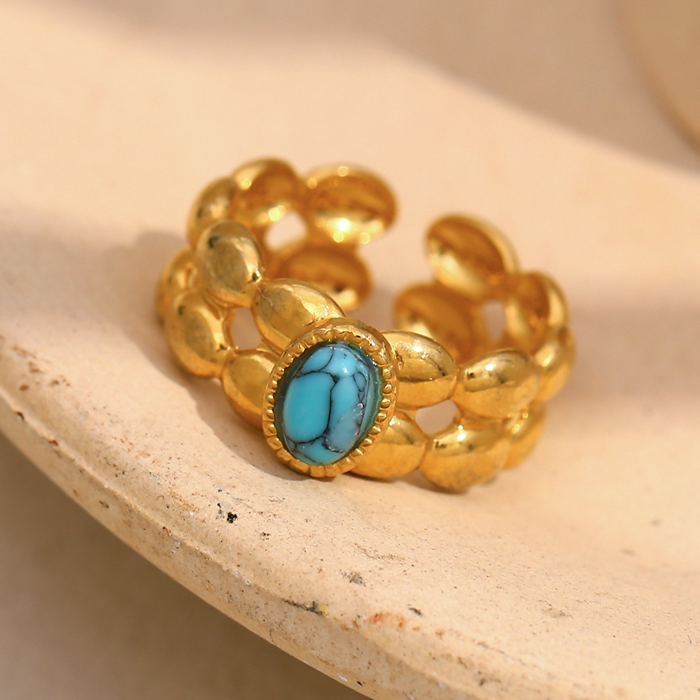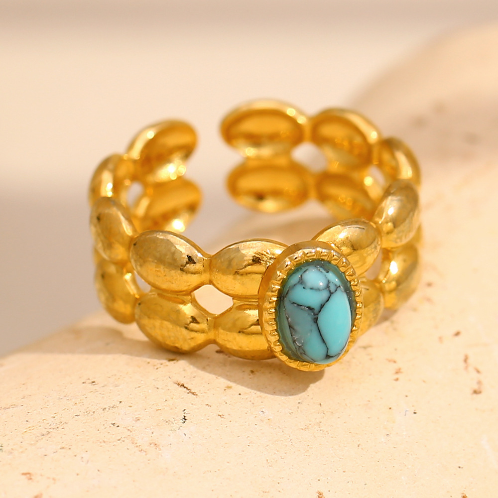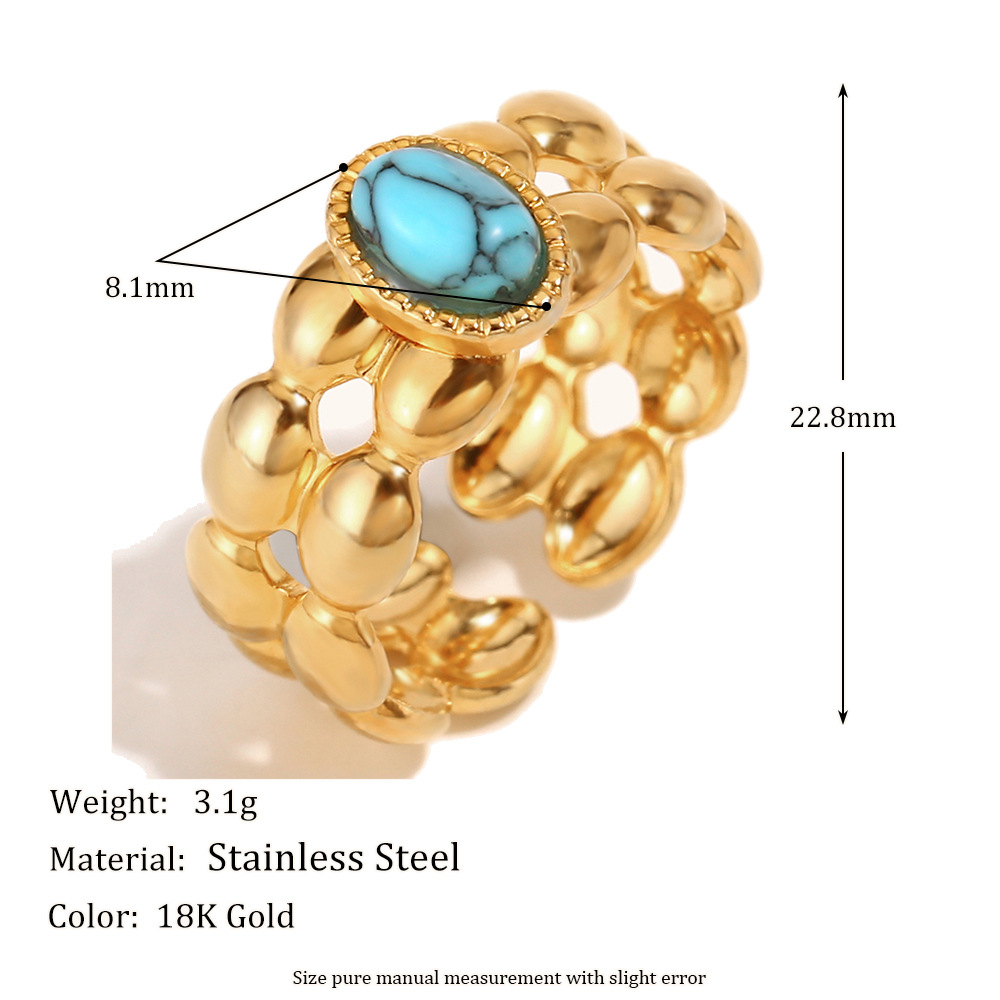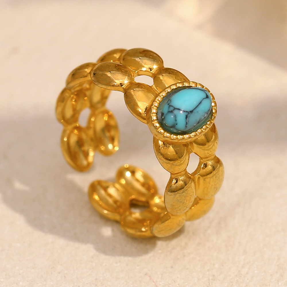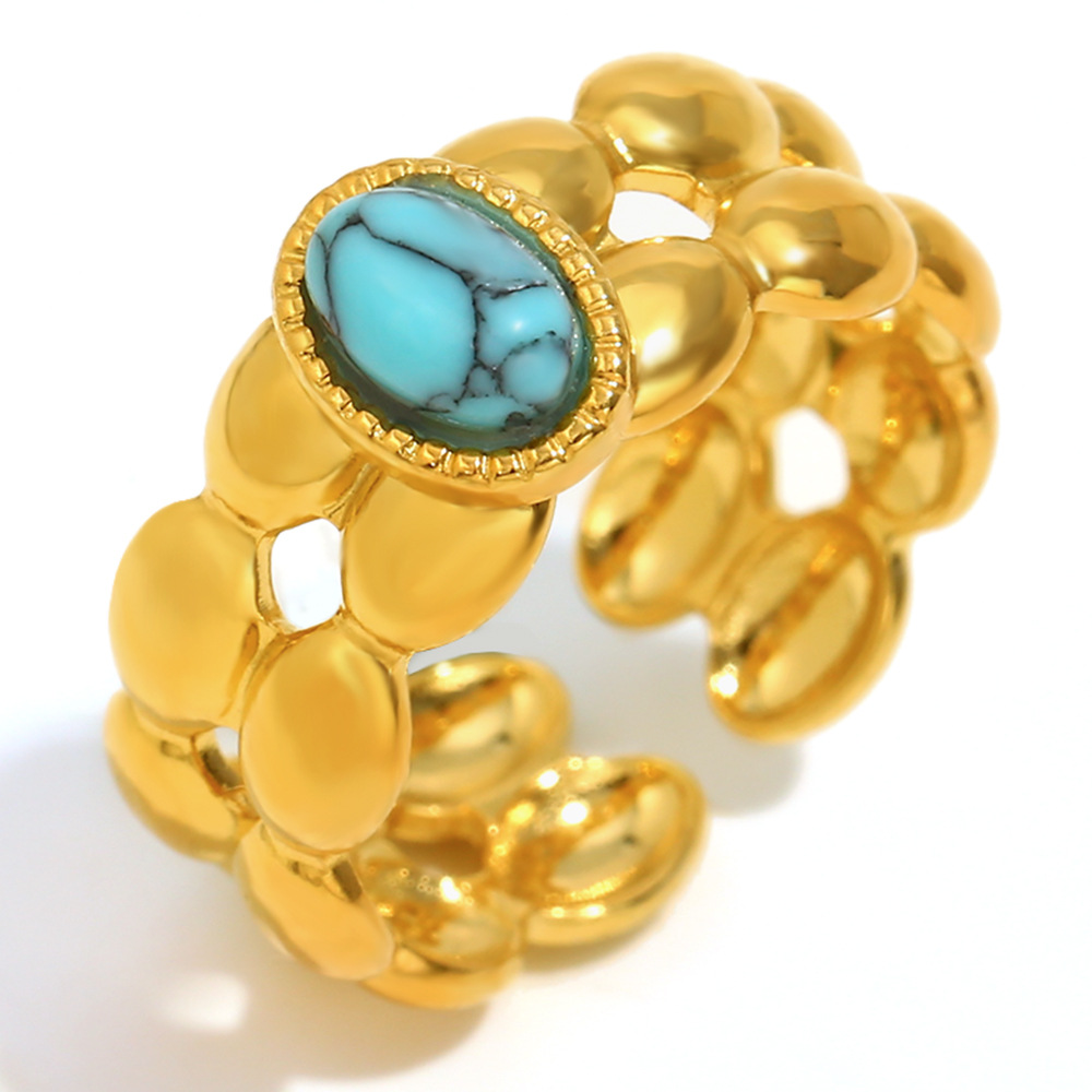 Bague en acier inoxydable, Acier inoxydable 304, avec turquoise synthétique, Plaqué or 18K, bijoux de mode & pour femme & creux, Vendu par PC
