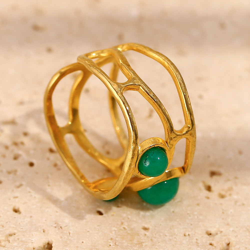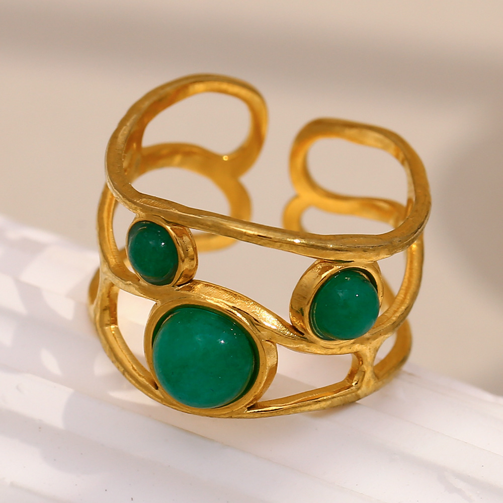 Bague en acier inoxydable, Acier inoxydable 304, avec Gemme synthétique, Plaqué or 18K, bijoux de mode & pour femme & creux, plus de couleurs à choisir, Vendu par PC