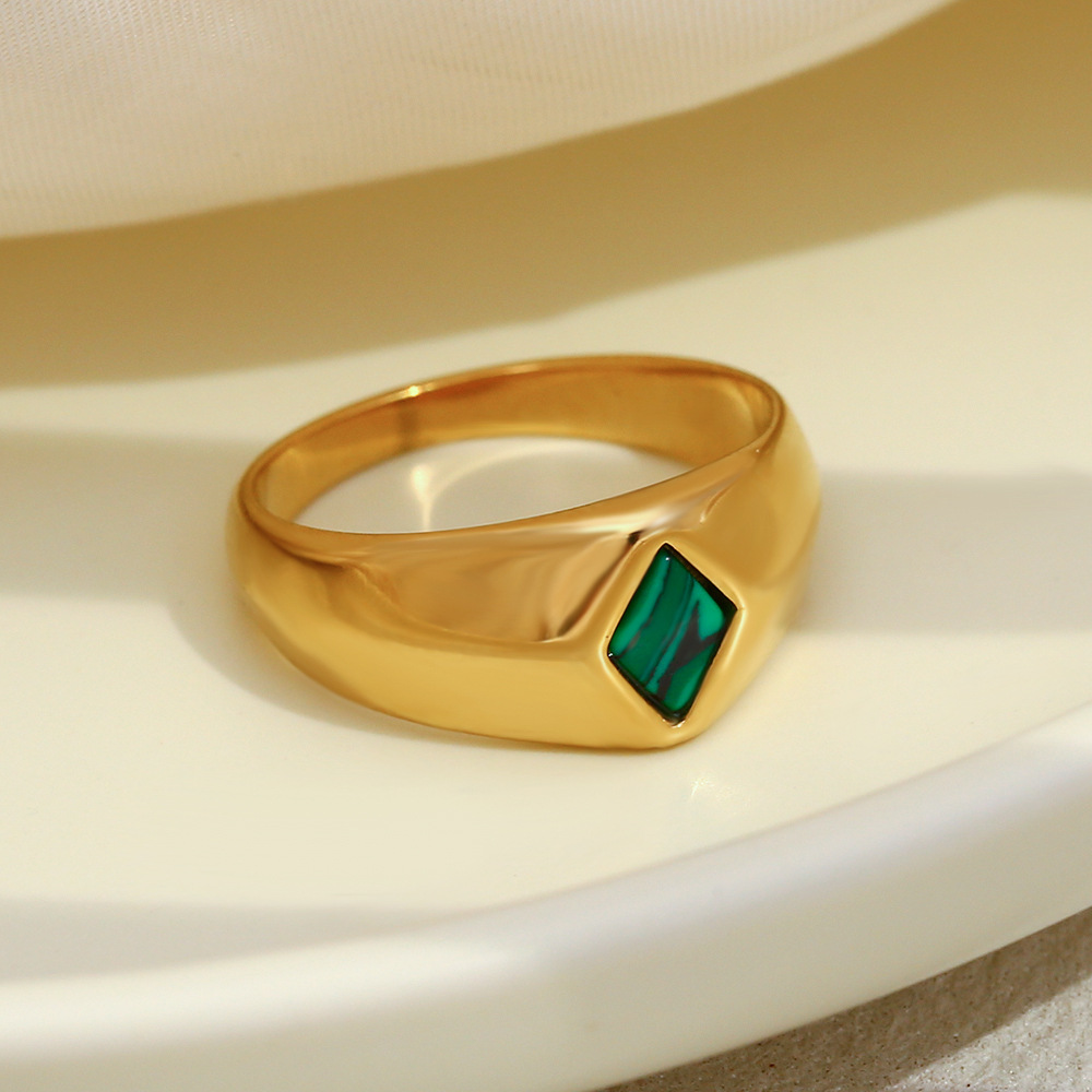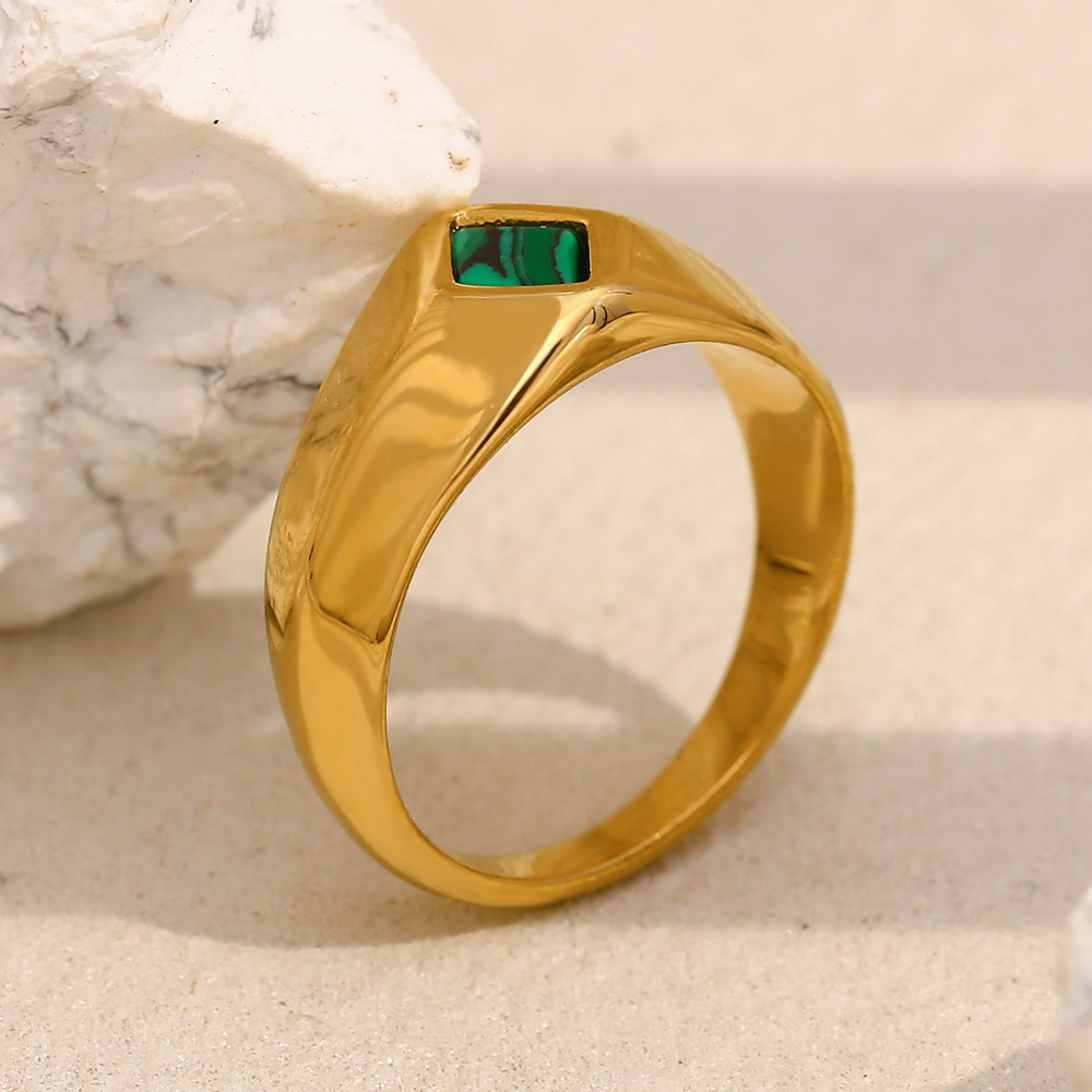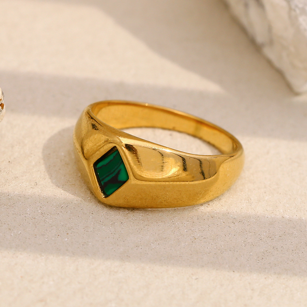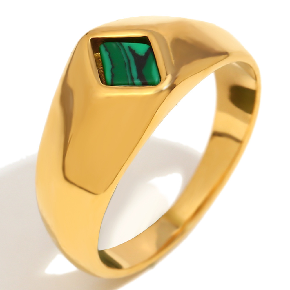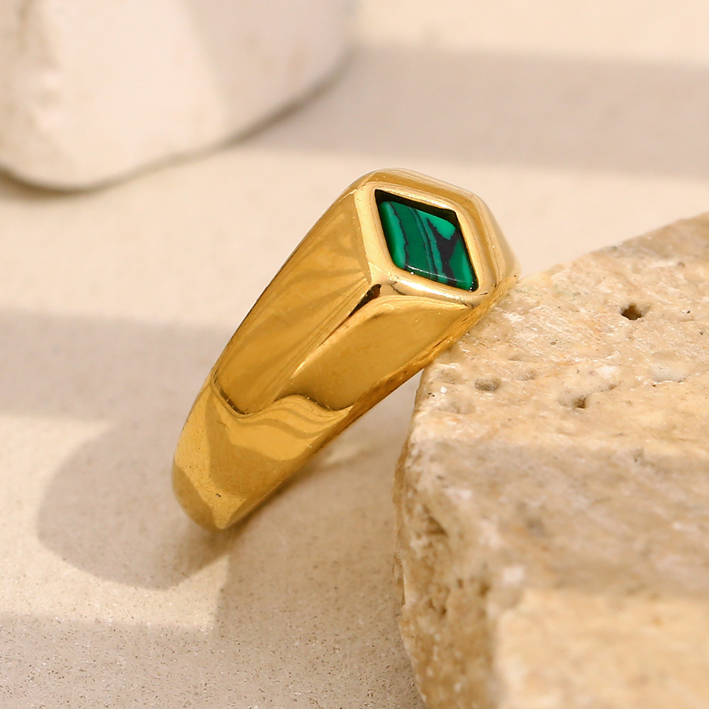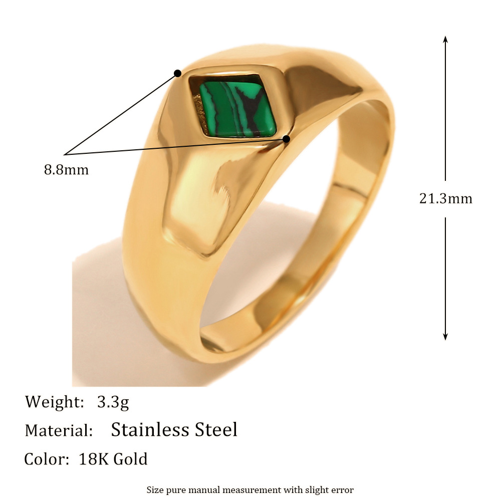 Bague en acier inoxydable, Acier inoxydable 304, avec Synthétique-Malachite, Plaqué or 18K, bijoux de mode & normes différentes pour le choix & pour femme, Vendu par PC