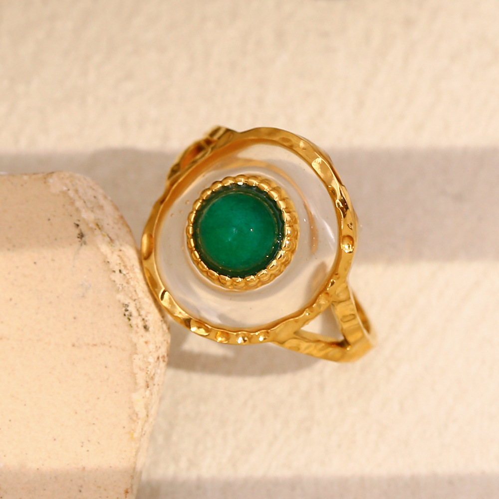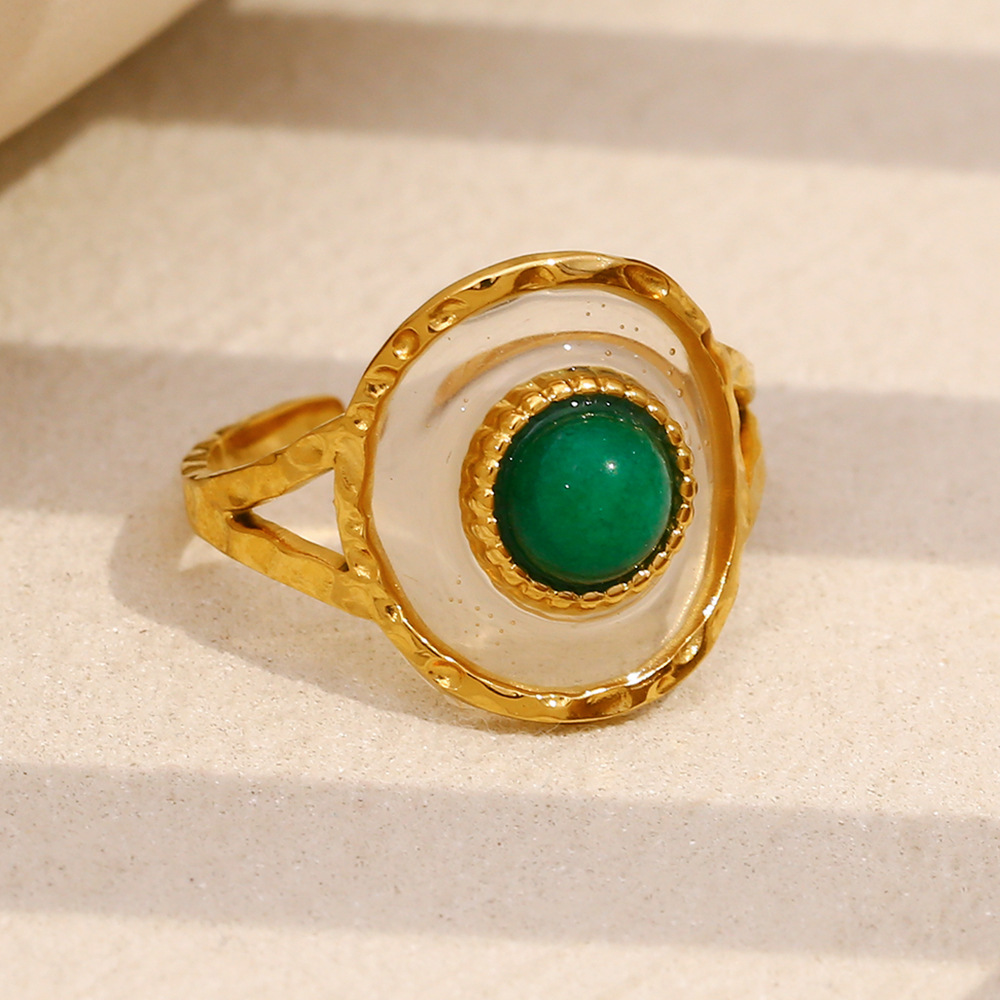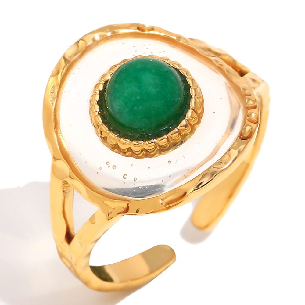 Bague en acier inoxydable, Acier inoxydable 304, avec Gemme synthétique & Acrylique, Plaqué or 18K, bijoux de mode & pour femme & creux, Vendu par PC
