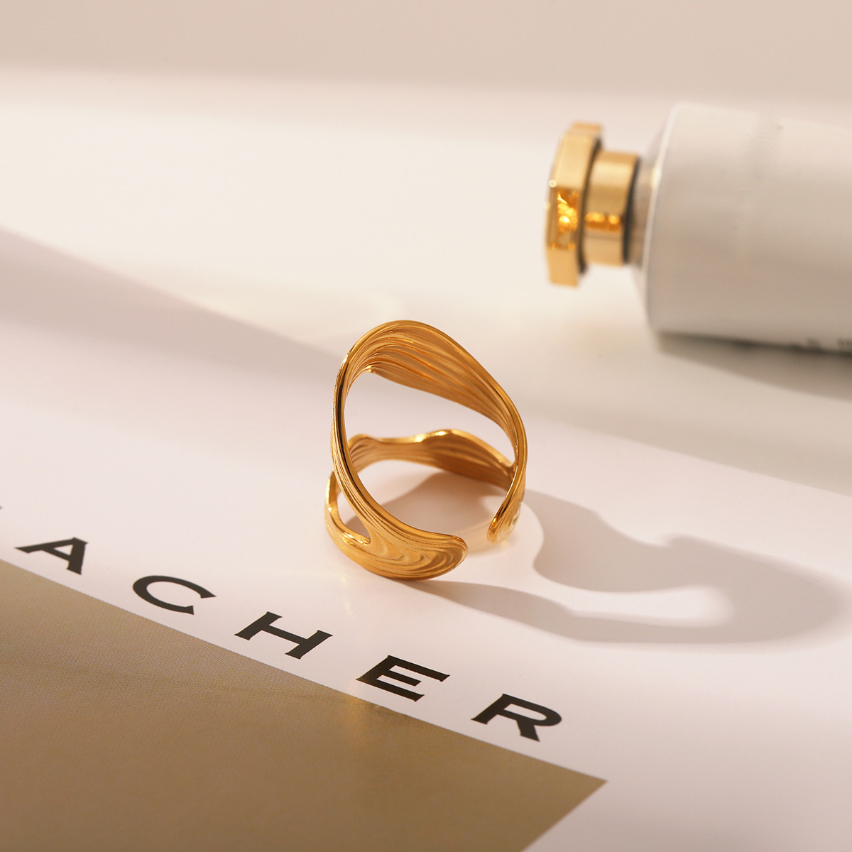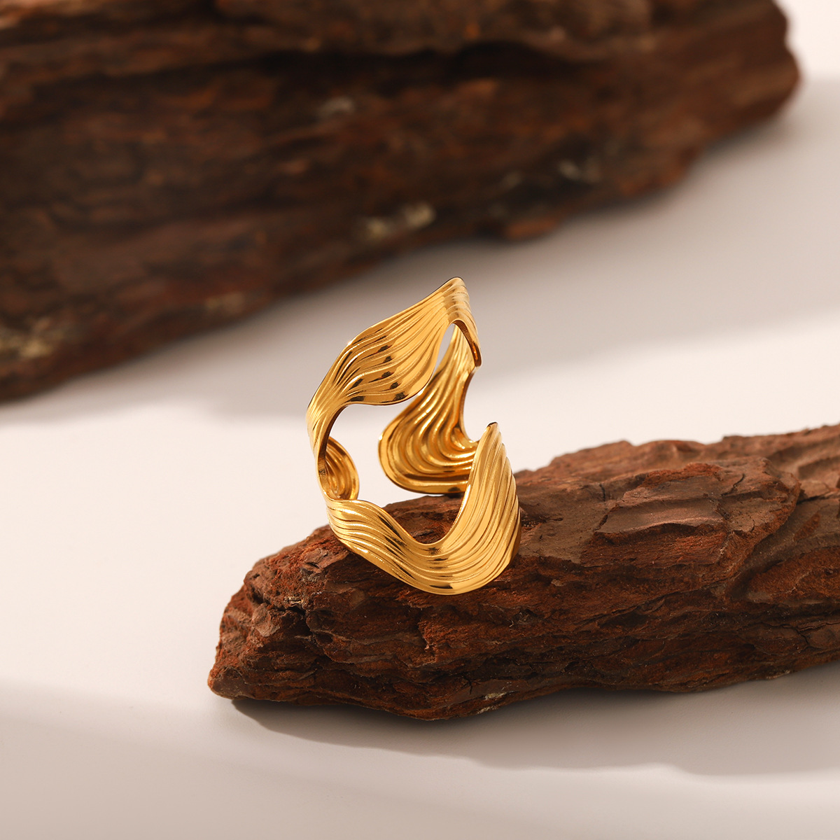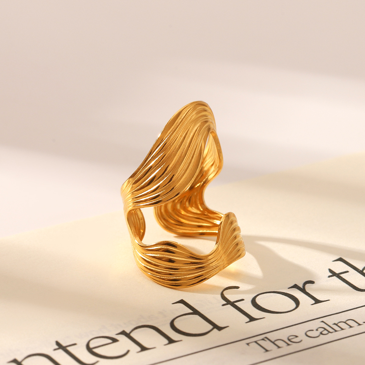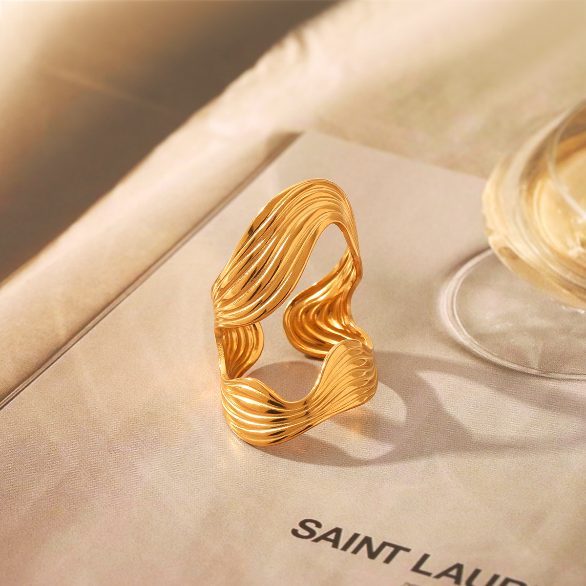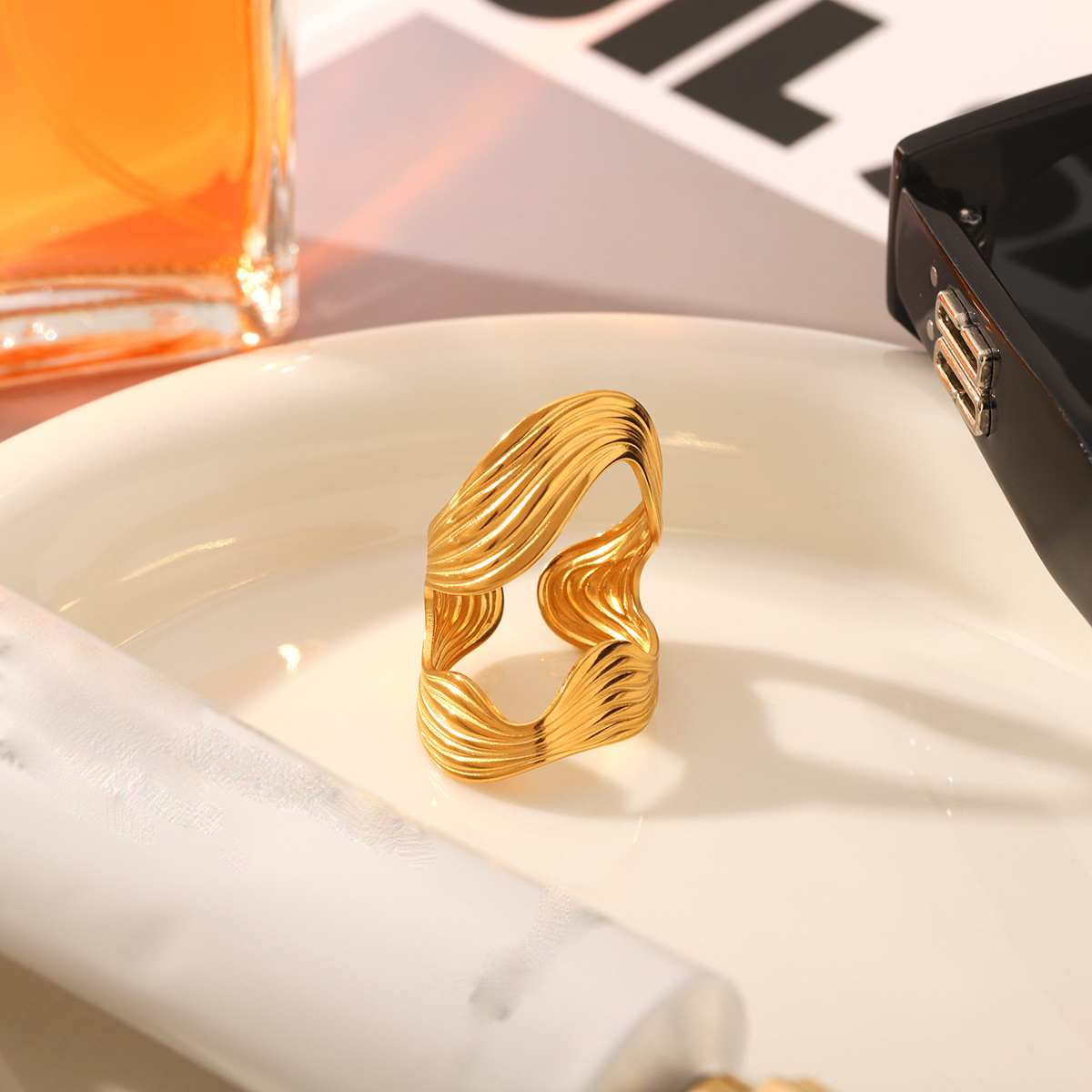 Bague en acier inoxydable, Acier inoxydable 304, Placage, bijoux de mode & pour femme & creux, doré, Vendu par PC
