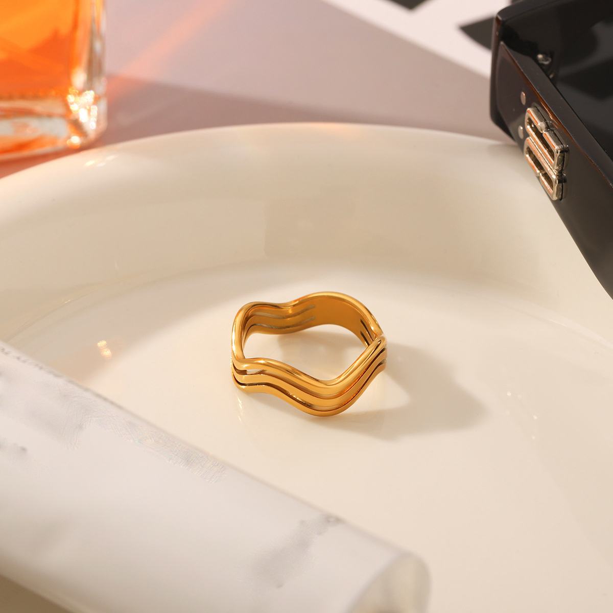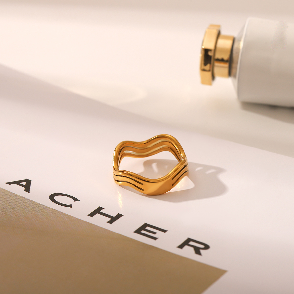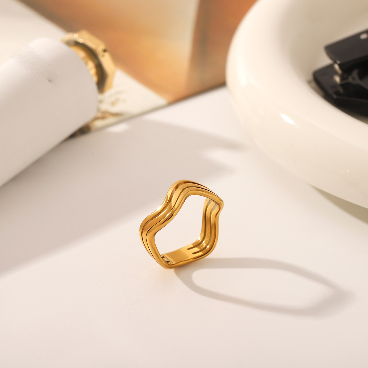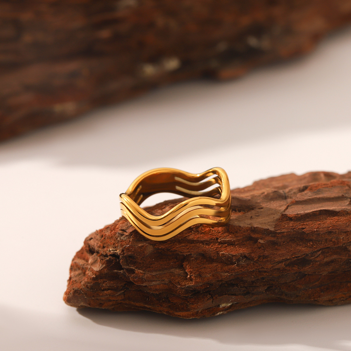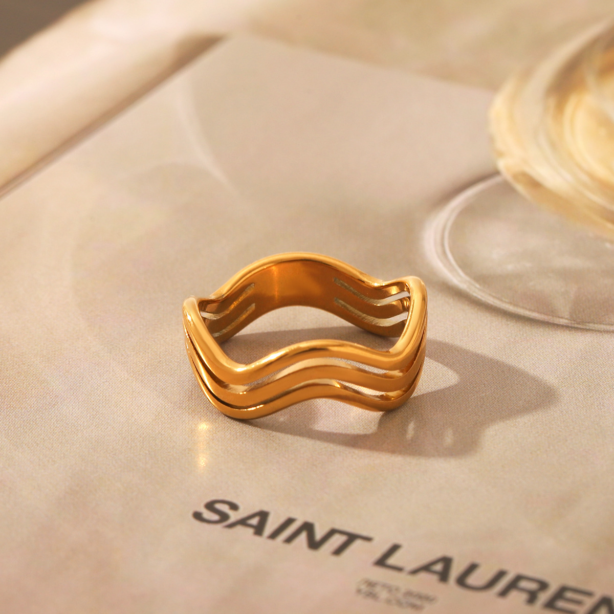 Bague en acier inoxydable, Acier inoxydable 304, Plaqué or 18K, bijoux de mode & pour femme & creux, Vendu par PC