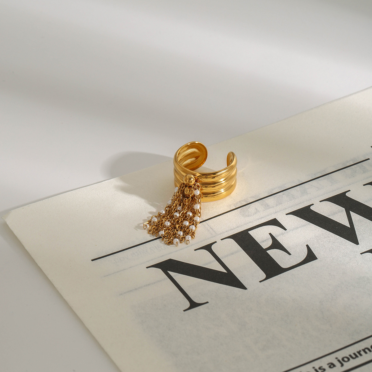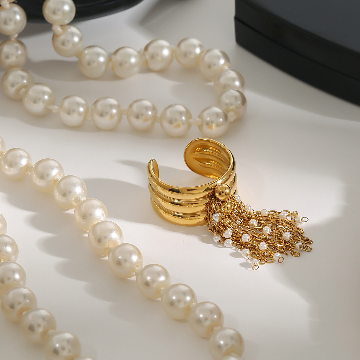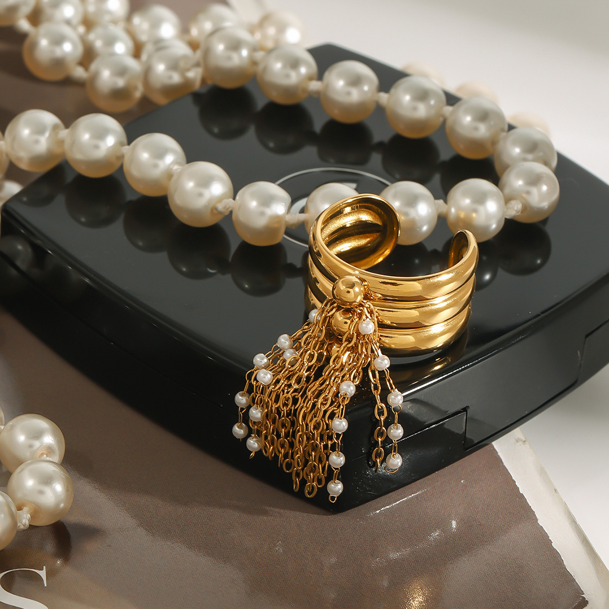 Bague en acier inoxydable, Acier inoxydable 304, avec perle de plastique, Placage, bijoux de mode & pour femme, doré, Vendu par PC